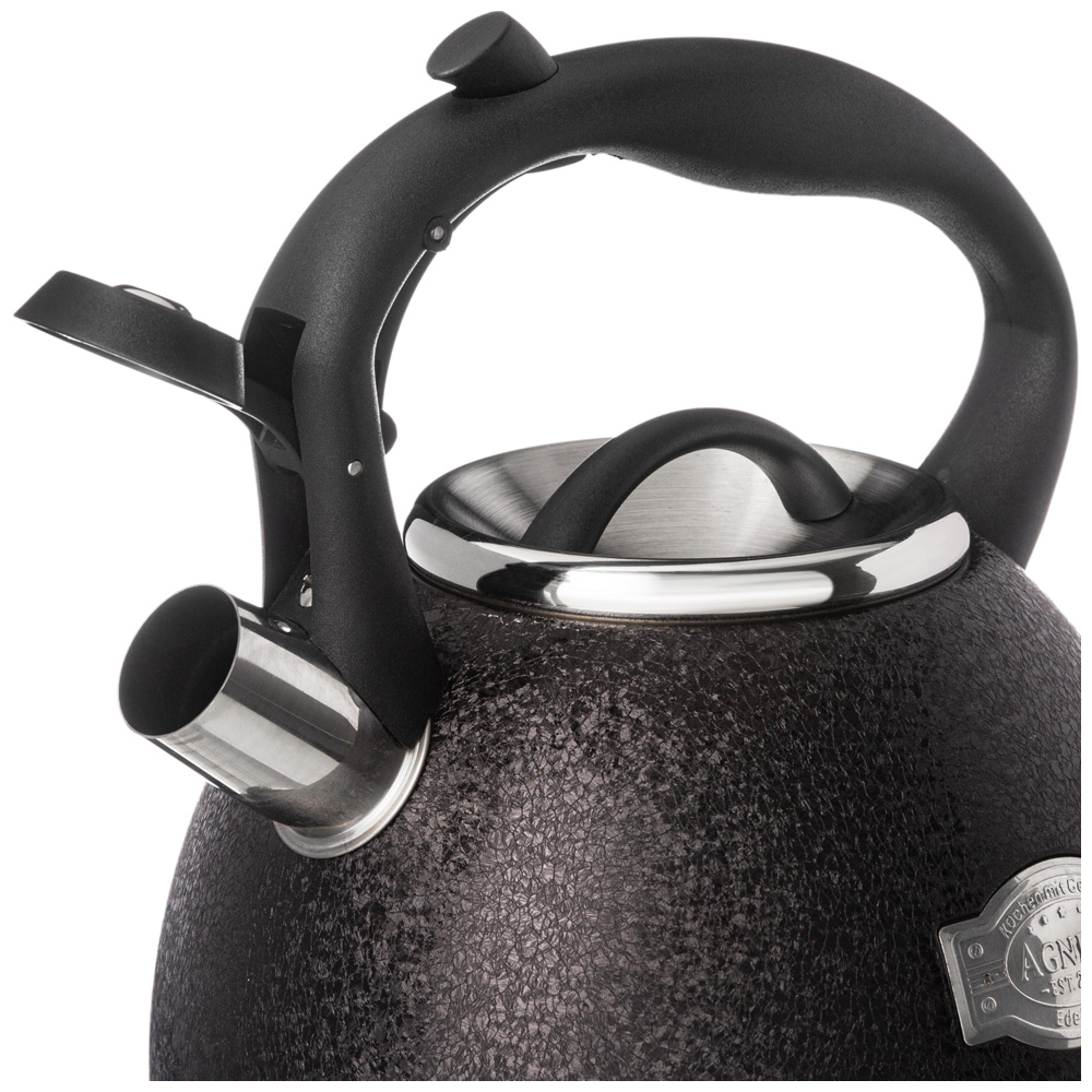 ЧАЙНИК AGNESS СО СВИСТКОМ, 2,5Л, C ШИЛЬДИКОМ, BLACK, ИНДУКЦИОН. КАПСУЛ. ДНО