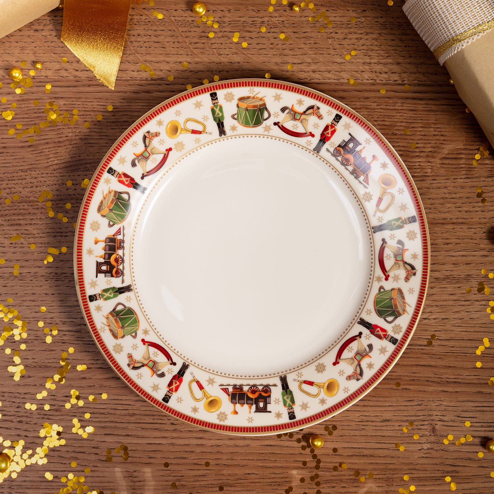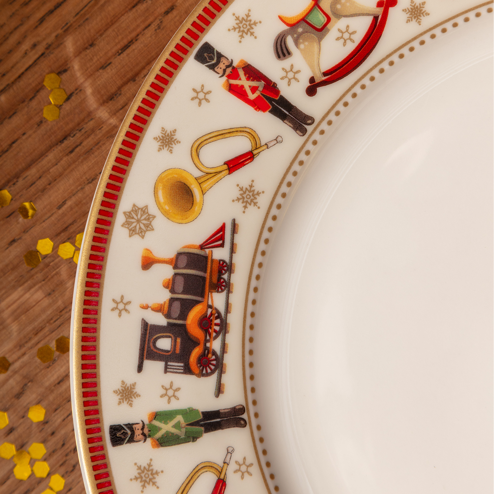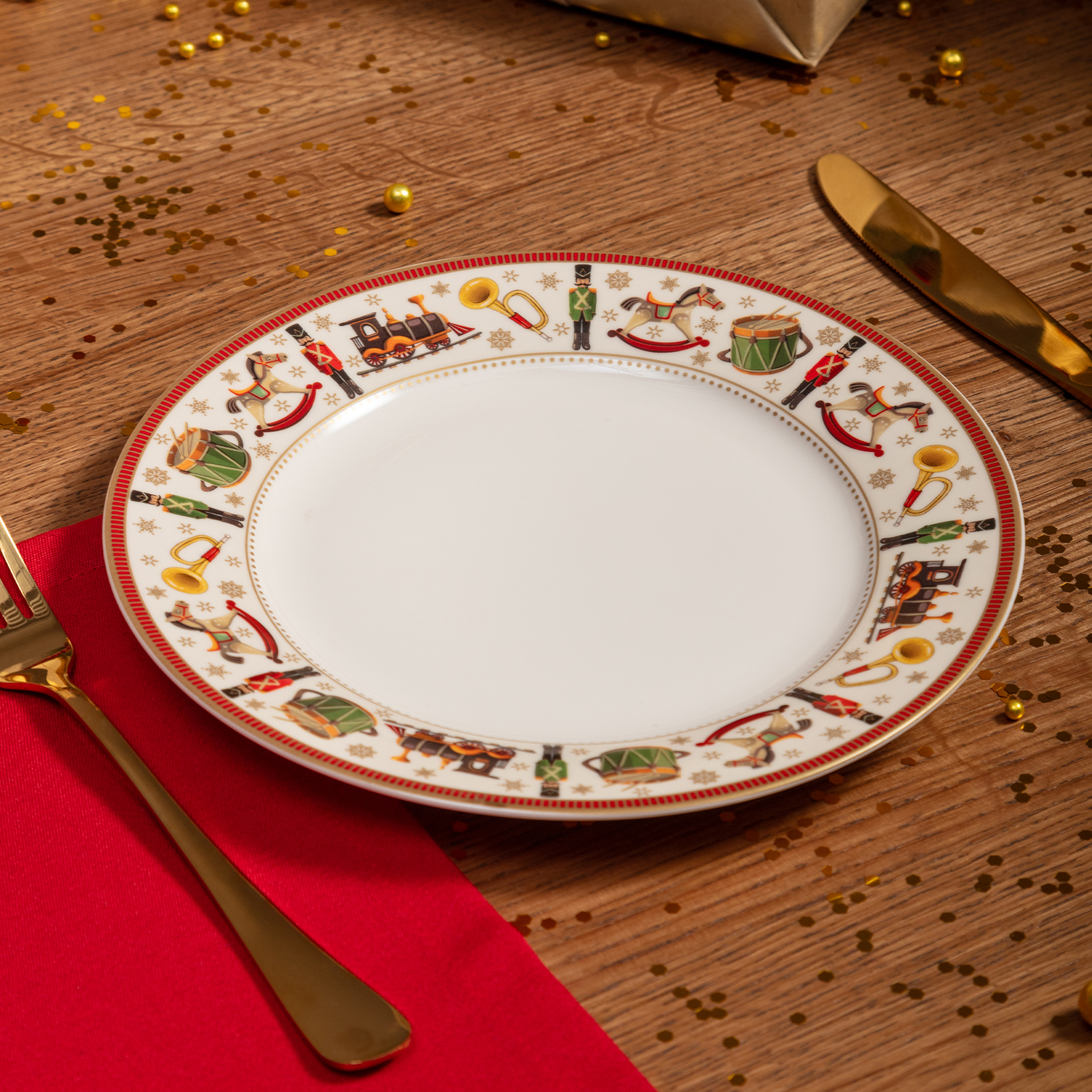 ТМ LEFARD эксклюзивная коллекция «Nutcracker» - Щелкунчик создана по мотивам одноименной истории, с которой знакомы все дети и взрослые. Волшебная история о новогоднем чуде идеально подходит для создания праздничного настроения. Широкий ассортимент тарелок, салатников, кружек, чайных пар поможет сервировать праздничный стол и создать сказочную атмосферу. Все изделия выполнены из качественного тонкого фарфора. Прямые современные формы, удобные объемы. Стильная, подарочная упаковка. Дарите сказку друзьям и близким людям! Можно использовать в СВЧ, не рекомендуется мыть в посудомоечных машинах во избежание повреждения золотой отводки (деколи) на изделиях.