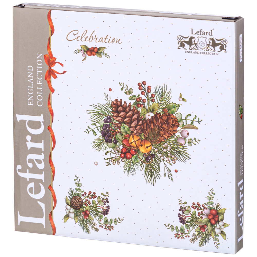 ТМ LEFARD представляет коллекцию "Торжество - Celebration" - изящная сервировка Новогоднего стола. Изделия с любимым символом и атрибутом Нового Года - Елкой выполнены на тонкостенном высококачественном фарфоре. Посуда упакована в красочные коробки. Это прекрасный подарок. Продукция прошла сертификацию, безопасна для контакта с пищевыми продуктами. Можно использовать в СВЧ, не рекомендуется мыть в посудомоечных машинах во избежание повреждения золотой отводки (деколи) на изделиях.