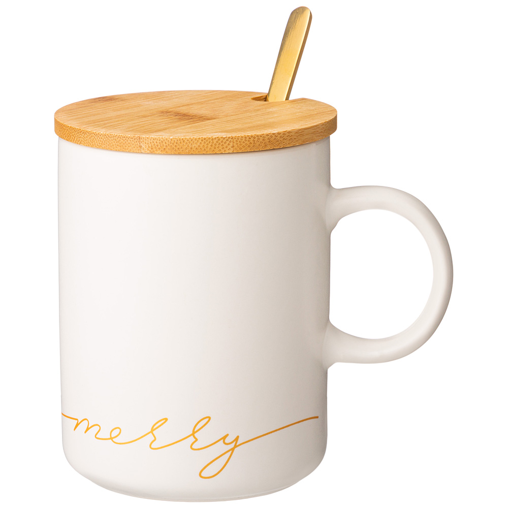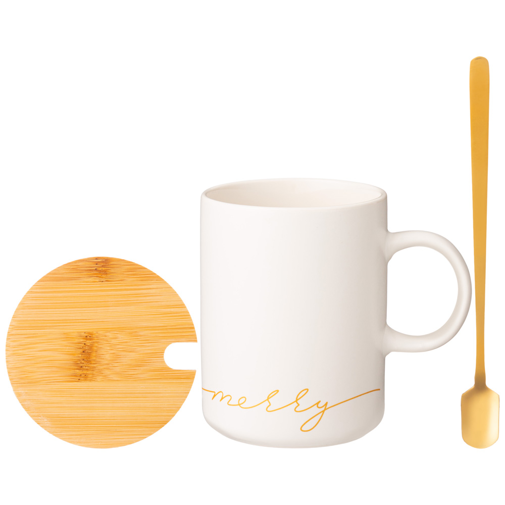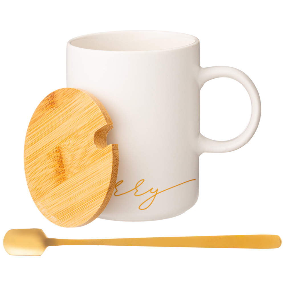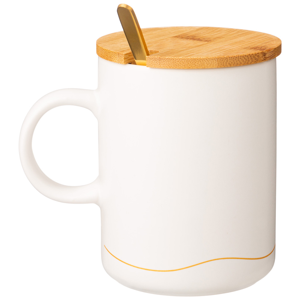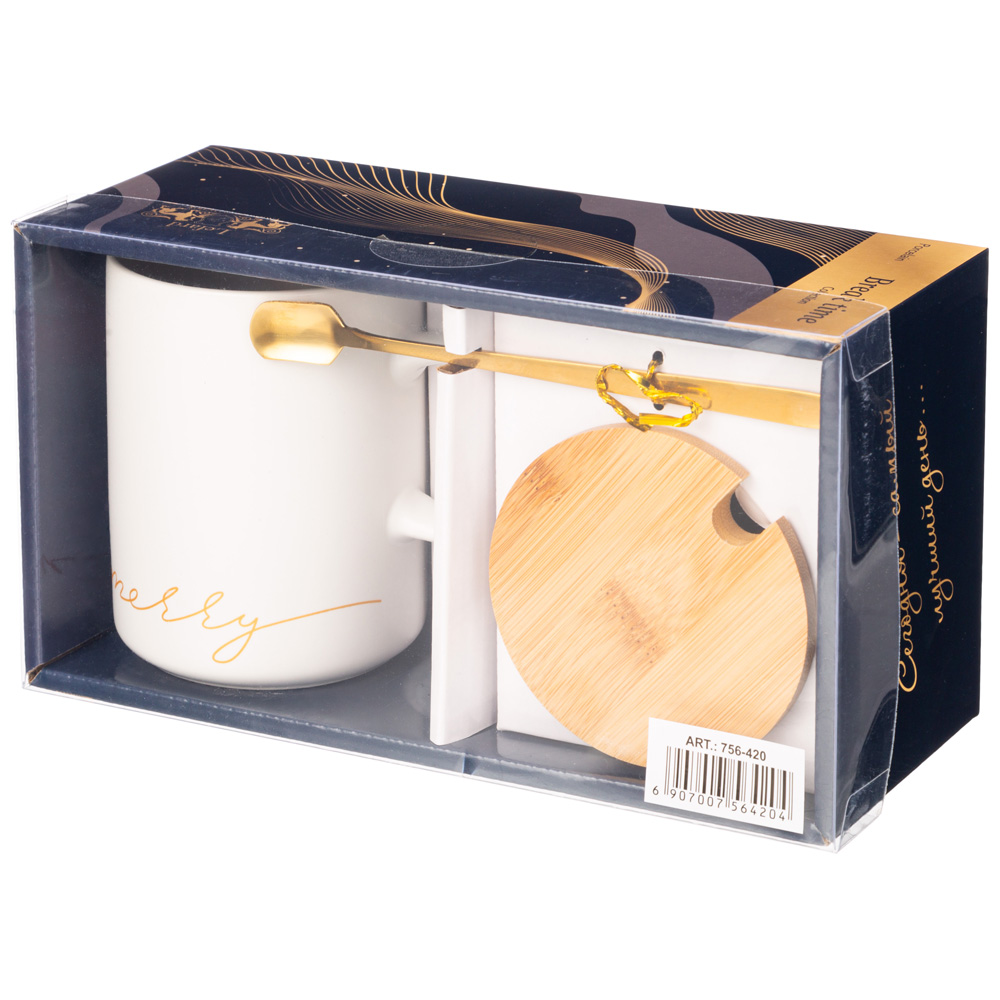 КРУЖКА БЕЛАЯ 380 МЛ С КРЫШКОЙ И ЛОЖКОЙ В ПОДАРОЧНОЙ УПАКОВКЕ (КОР=18ШТ)