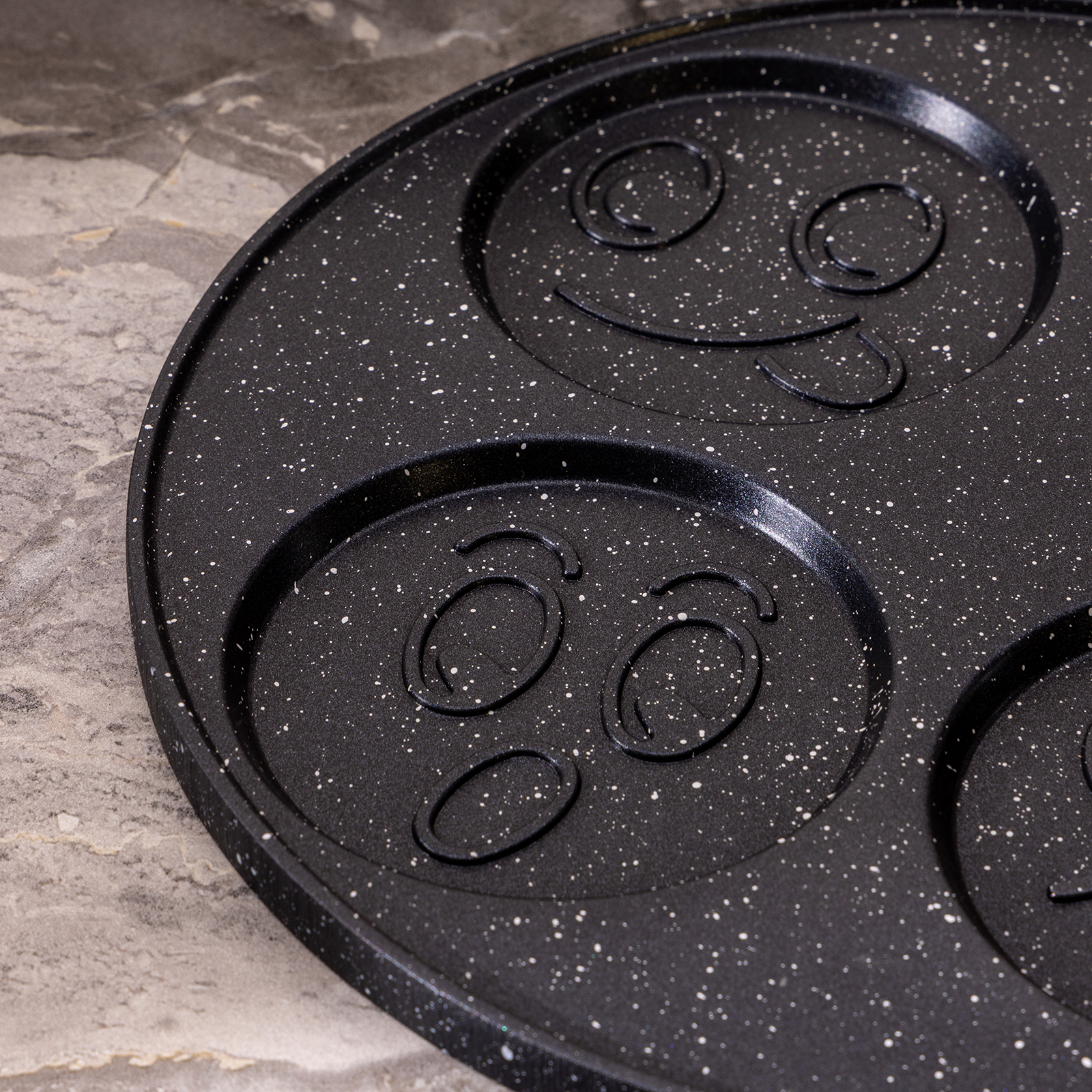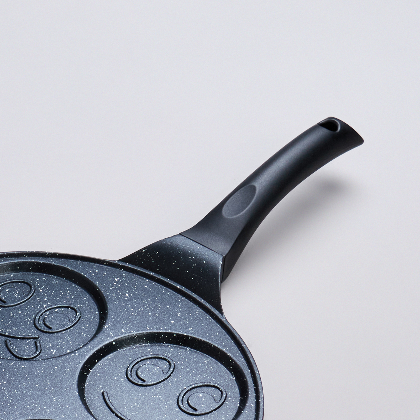 Сковороды AGNESS серии "СМАЙЛ" выполнены из литого алюминия. Такая посуда отличается высокой теплопроводностью и устойчивостью к деформациям. Необычный дизайн сковороды позволит приготовить интересные и веселые оладушки и омлеты.