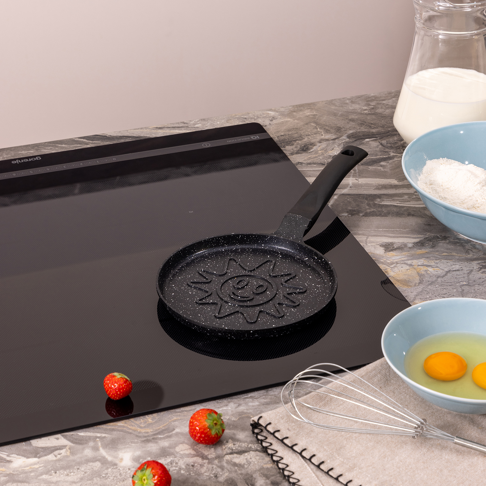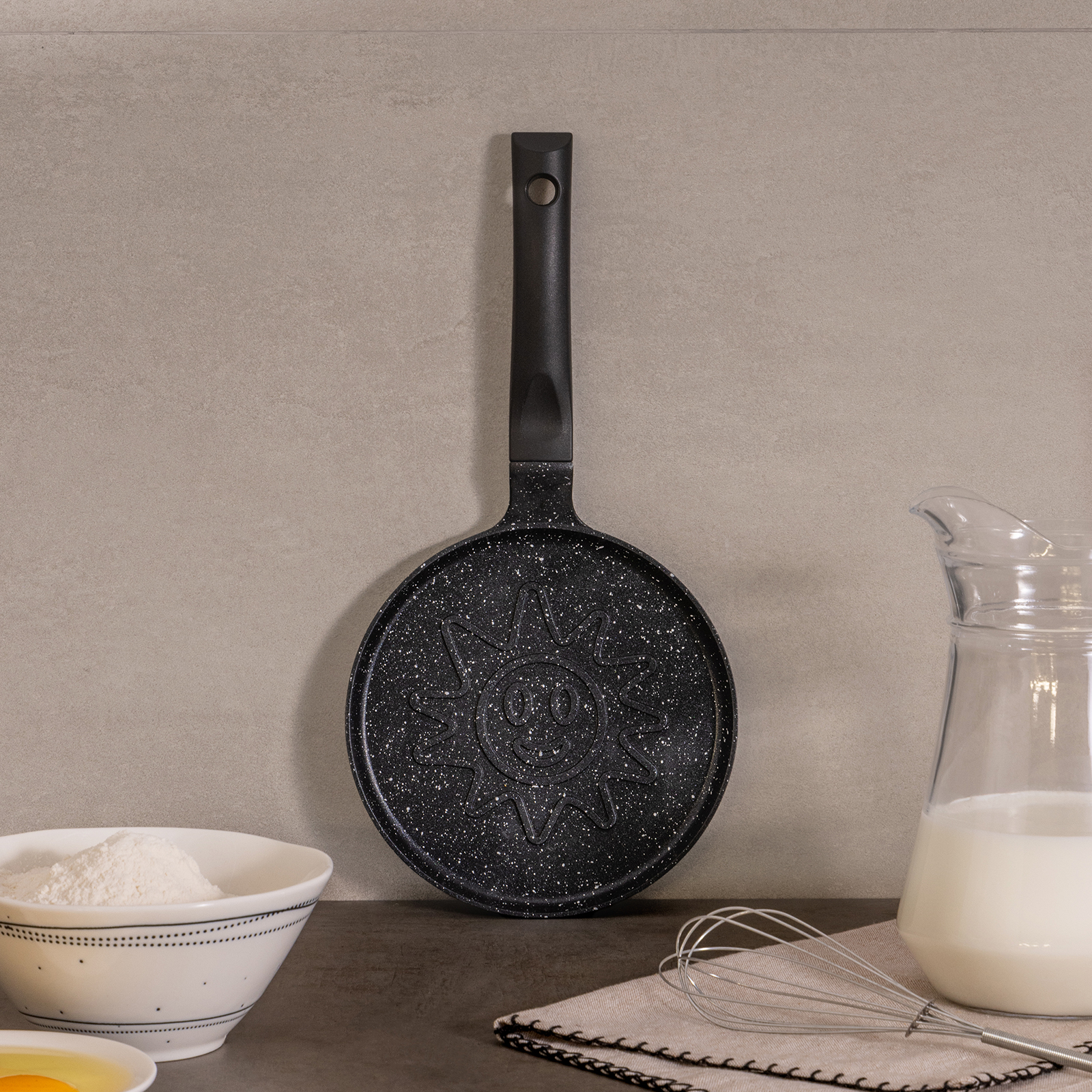 - Благодаря гранитному антипригарному покрытию Вам понадобится минимальное количество масла для приготовления. В посуде с антипригарным покрытием блюда не прилипают, а сковороду легко мыть.