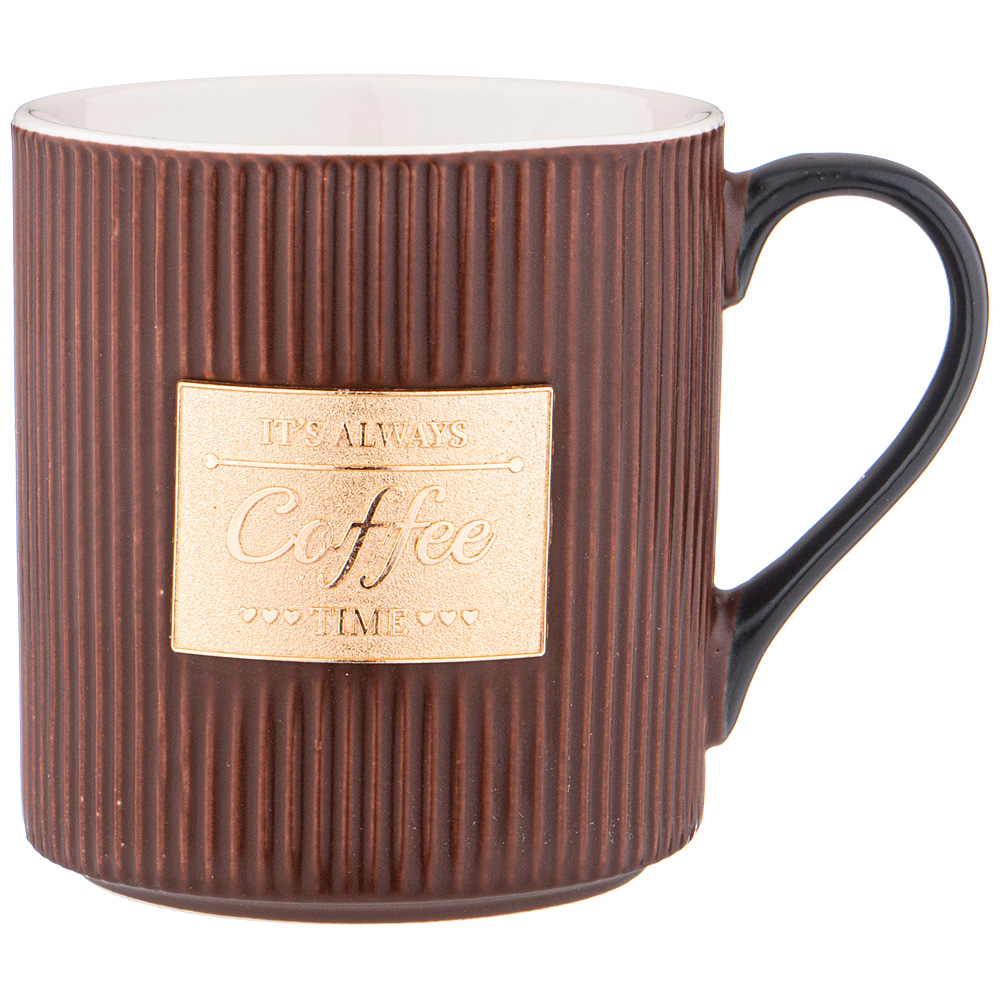 КРУЖКА КОФЕЙНОГО ЦВЕТА С ЗОЛОТОЙ ДЕТАЛЬЮ 400 МЛ (КОР=36ШТ) 12,5*9,3*10СМ