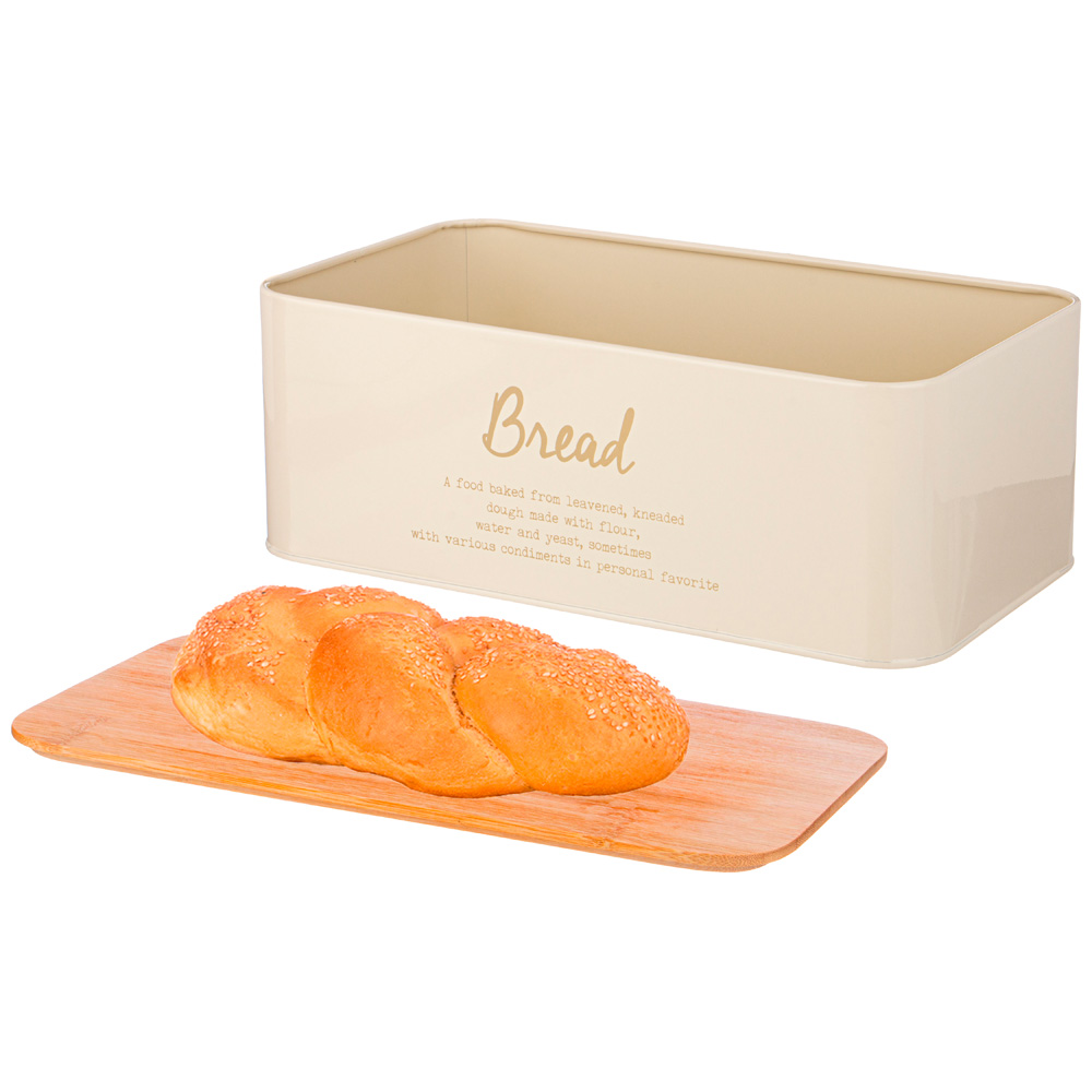 Хлебница оснащена крышкой-доской, на которой можно сразу нарезать хлеб.
