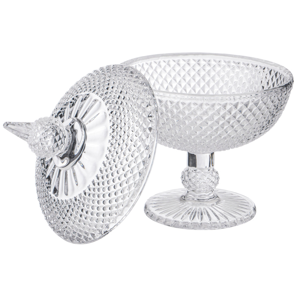 • можно использовать для хранения и сервировки конфет, снеков, орехов, сухофруктов, варенья. Качественное прочное стекло сохраняет свежесть и аромат ваших любимых сладостей, защищая их от влаги и пыли. Конфеты, фрукты и десерты, помещенные в емкости DIAMANT будут смотреться еще аппетитнее, а ваша кухня заиграет новыми красками.