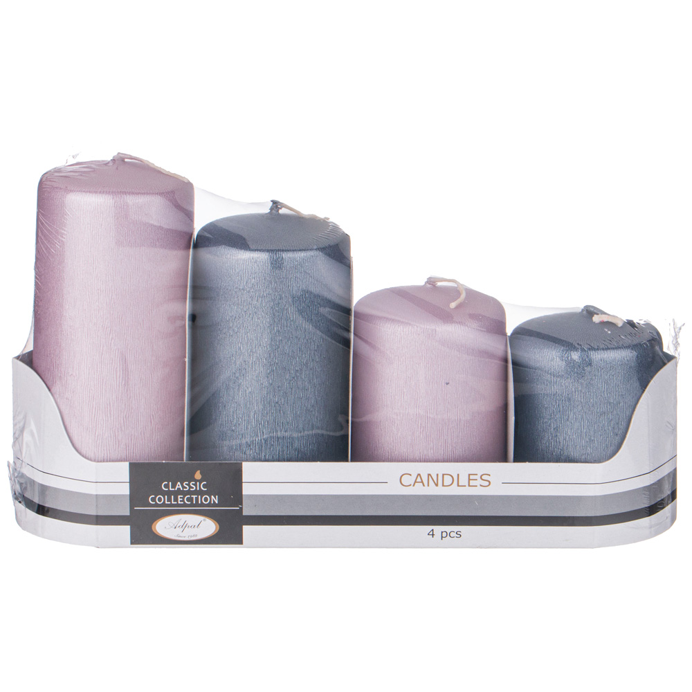НАБОР СВЕЧЕЙ ADPAL VELVET ИЗ 4 ШТ 7/8/10/12*5 СМ СЕРЫЙ И РОЗОВЫЙ
