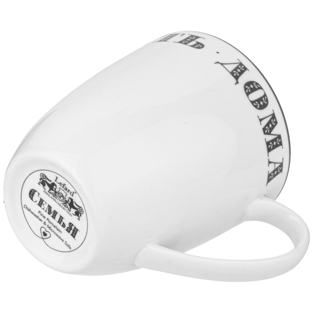 Кружка TM Lefard "ХОРОШО БЫТЬ ДОМА" 420 мл. Кружка фарфоровая для чая и кофе "ХОРОШО БЫТЬ ДОМА" объемом 420 мл – это стильный и элегантный предмет посуды, который станет незаменимым спутником в вашем ежедневном чаепитии или кофе-брейке. Изготовлена из высококачественного фарфора, эта кружка обладает прекрасными тепло-изолирующими свойствами, что позволяет сохранить напиток горячим на длительное время. Благодаря своей вместимости в 420 мл, она идеальна для любителей насыщенного и обильного чая или кофе. Дизайн кружки прост, но стильный – ее гладкая и глянцевая поверхность придает ей привлекательный внешний вид. Классическая форма с удобной ручкой делает ее удобной в использовании, а также позволяет легко держать рукой, не опасаясь ожогов.