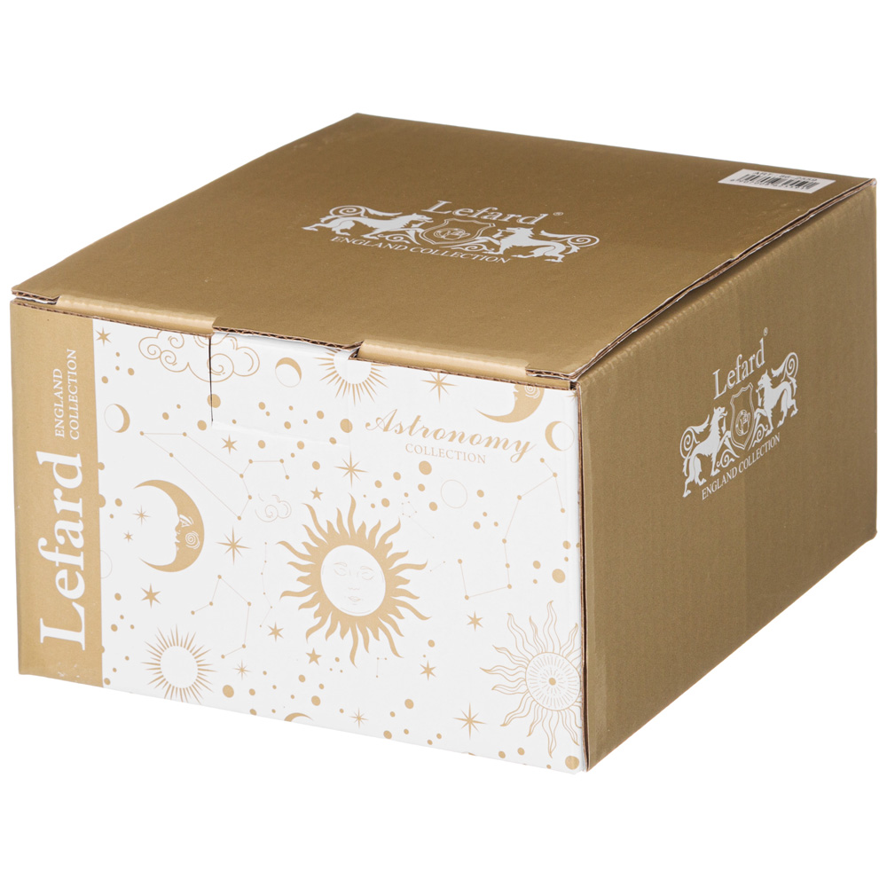 TM LEFARD представляет элегантную коллекцию “Astronomy” из белоснежного упрочненного фарфора. Изящное изображение солнца, мерцающие звезды, созвездия и облака создают атмосферу тепла и уюта, превращая обычное чаепитие в момент вдохновения. Коллекция представлена чайными и кофейными парами, кружками, чайником и сахарницей, блюдом для сладкого. Красочная упаковка, прекрасный подарок для мечтателей и романтиков, любящих все необычное и прекрасное. Посуда прошла сертификацию и подходит для контакта с пищевыми продуктами, легко моется в посудомоечной машине и может использоваться в микроволновой печи.