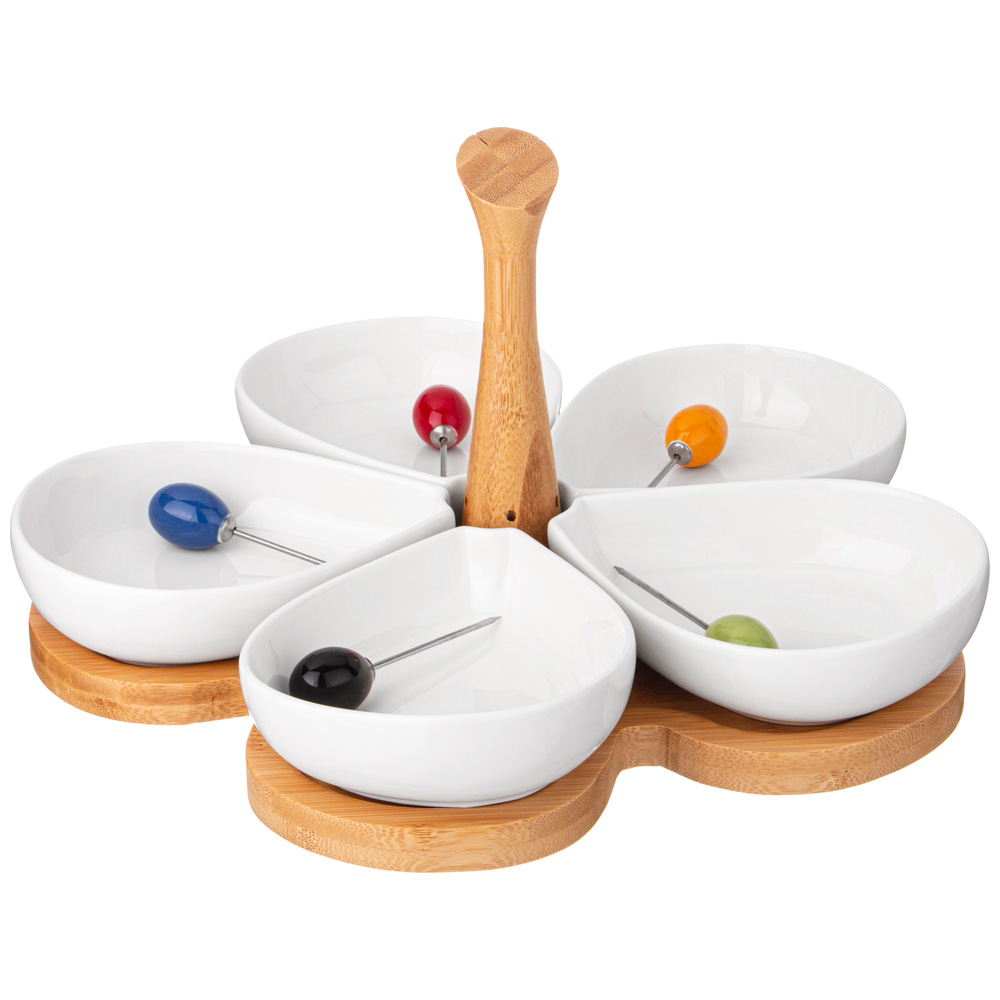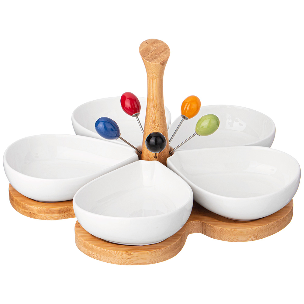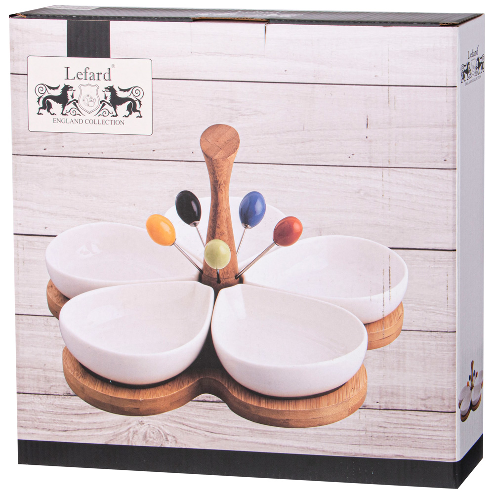 МЕНАЖНИЦА LEFARD "NATIVE" 5 СЕКЦИЙ 200 МЛ НА ДЕР. ПОДСТАВКЕ С ДЕР. РУЧКОЙ, 5 ВИЛОЧЕК (КОР=8НАБ.)