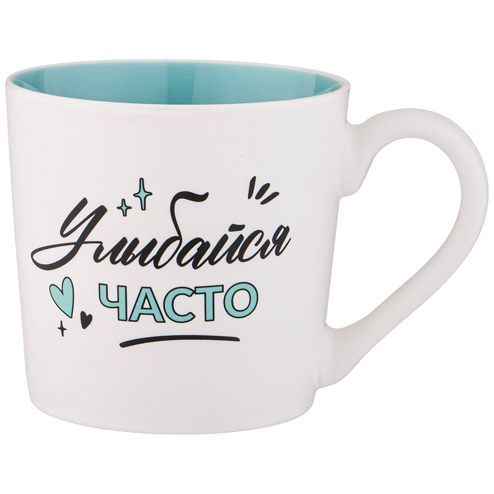 Кружка TM Lefard лаконичной формы с надписью " Улыбайся часто " имеет удобную ручку и отличный объем 380мл. Кружка изготовлена из качественного фарфора. Отличный выбор для подарка. Продукция сертифицирована и безопасна для контакта с пищевыми продуктами. Можно использовать в микроволновой печи и посудомоечной машине.