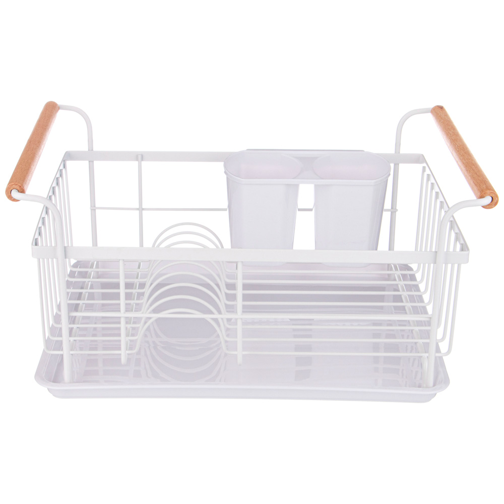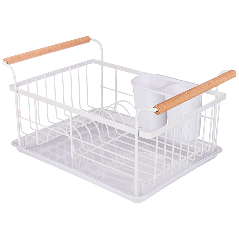 СУШИЛКА ДЛЯ ПОСУДЫ С ДЕРЕВЯННЫМИ РУЧКАМИ БЕЛАЯ 36*26*16,5 СМ (КОР-6ШТ)
