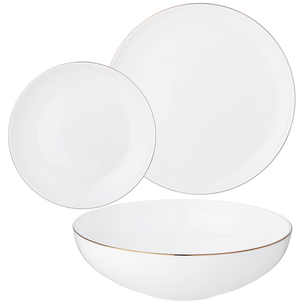 ТМ Lefard коллекция "Сristal Gold" выполнена из костяного фарфора с изящной золотой окантовкой. Тонкий и очень прочный, белоснежный и издающий мелодичный звук. Современные формы и оптимальные размеры. Хорош для праздничного застолья и на каждый день. Прекрасный подарок и отличный выбор для самой взыскательной хозяйки. Товар сертифицирован, безопасен здоровья. Можно ставить в микроволновую печь. Рекомендуется мыть вручную с применением мягких моющих средств.