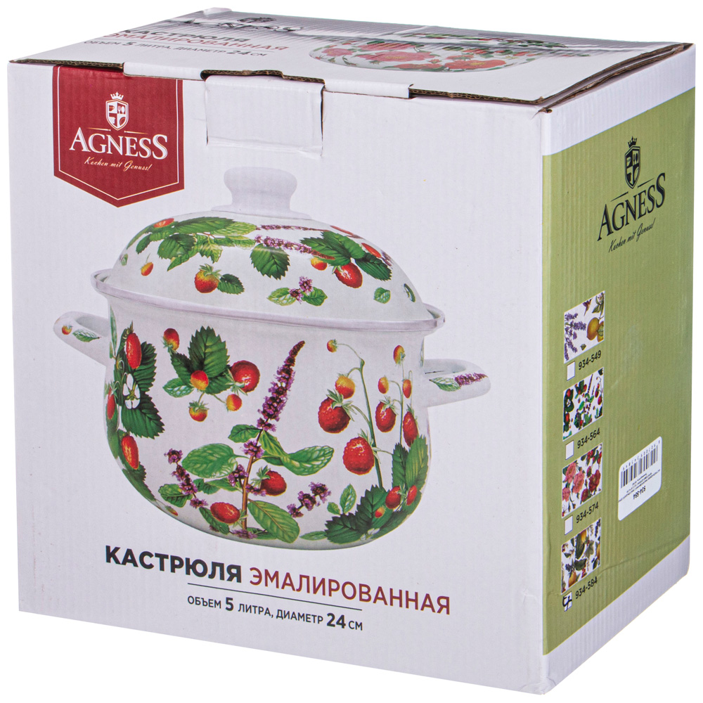 КАСТРЮЛЯ AGNESS ЭМАЛИРОВАННАЯ С ЭМАЛ.КРЫШКОЙ СЕРИЯ "ФРУКТОВАЯ КОРЗИНА", 5.0 Л, 24*14 СМ