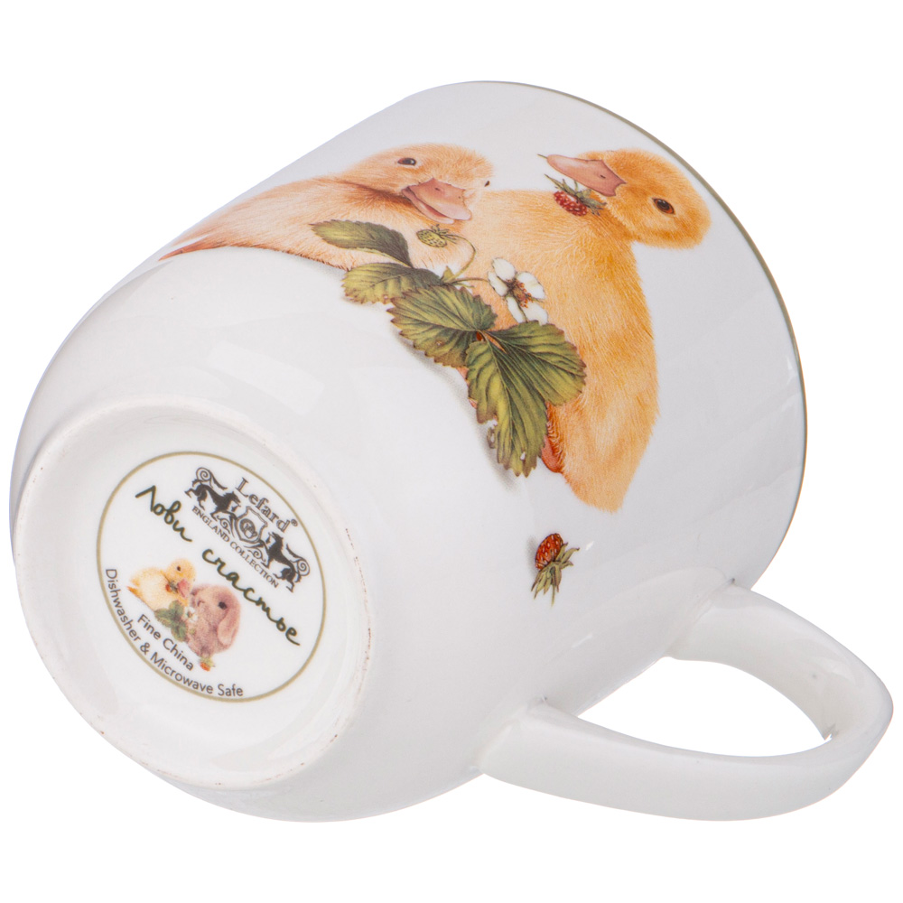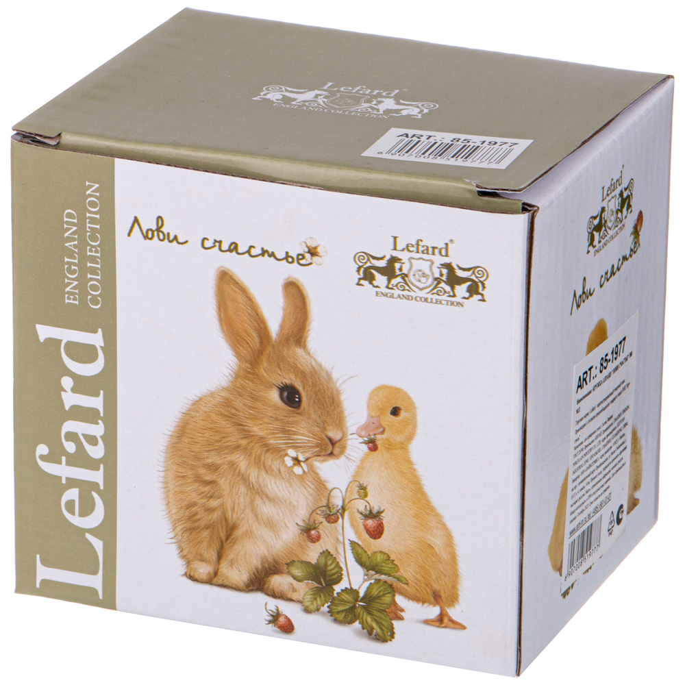 Наша жизнь состоит из маленьких мгновений счастья. Поймал это мгновение и наслаждайся! Только любовь и только доброта сделает мечты реальными. Пушистые крольчата и задорные утята заставят улыбнуться и согреть любовью родных и близких. ТМ LEFARD коллекция «Лови счастье» - это лучший подарок самым дорогим и любимым. Кружки, чайные пары, тарелки и салатники выполнены на тонкостенном высококачественном фарфоре. Удобные формы и размеры. Красочная упаковка. Продукция прошла сертификацию, безопасна для контакта с пищевыми продуктами. Можно использовать в микроволновой печи, мыть в посудомоечной машине.