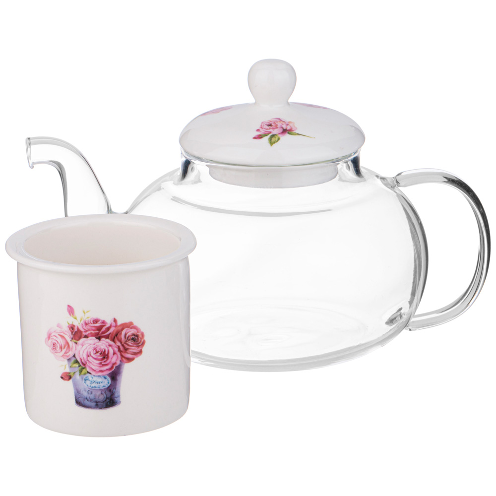 ЧАЙНИК СТЕКЛЯННЫЙ С ФАРФОРОВЫМ СИТОМ LEFARD ТЮЛЬПАНЫ 650 МЛ