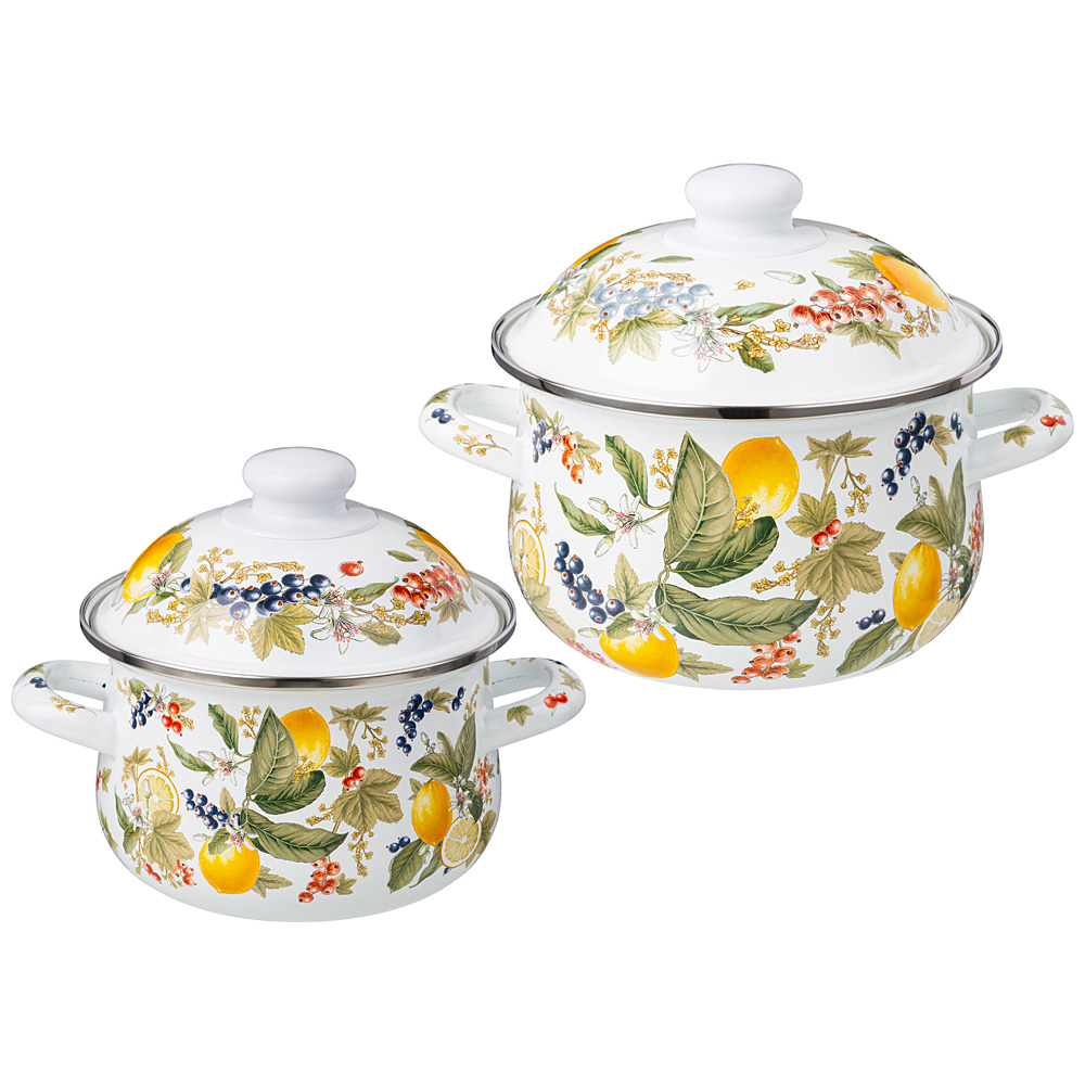 НАБОР КАСТРЮЛЬ AGNESS ЭМАЛИРОВАННЫХ СЕРИЯ "ФРУКТОВАЯ КОРЗИНА", 4ПР. 1,5Л И 2,8Л, 16Х10СМ, 20Х12СМ