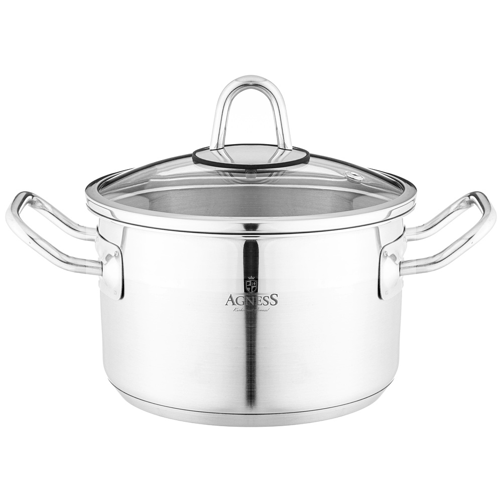 КАСТРЮЛЯ AGNESS 16X10 СМ 1,8 Л ВЫСОКОКАЧЕСТВЕННАЯ НЕРЖ СТАЛЬ 18/10 СО СТЕКЛ.КРЫШКОЙ