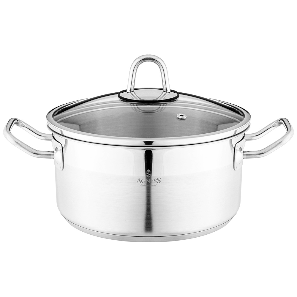 КАСТРЮЛЯ AGNESS 20X10 СМ 2,8 Л ВЫСОКОКАЧЕСТВЕННАЯ НЕРЖ СТАЛЬ 18/10 СО СТЕКЛ.КРЫШКОЙ