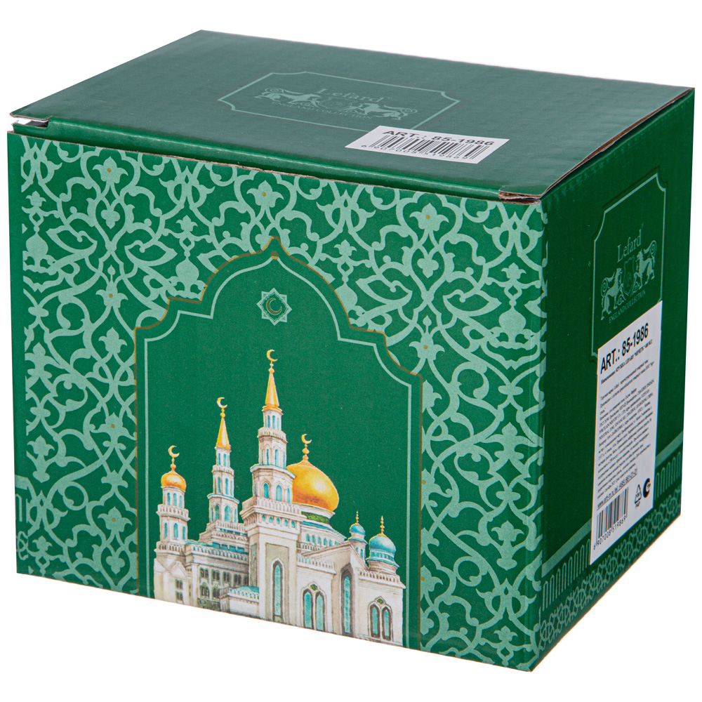 ТМ LEFARD представляет эксклюзивную коллекцию посуды «МЕЧЕТЬ». Кружки, чайные пары, наборы чайных пар, декоративные тарелки выполнены из высококачественного тонкостенного фарфора. При участии служителей Московской соборной мечети, одной из самых крупных в Европе, создана эта великолепная и торжественная коллекция. Восточный орнамент, изображение мечети, транскрипция Сур из Корана на кириллице, история Московской соборной мечети в нескольких любимых мусульманами цветах с отделкой золотом украшают изделия. Каждое изделие упаковано в цветную или подарочную коробки. Это прекрасный мусульманский подарок, всегда нужный и теплый. Относитесь к нему бережно и с почтением. Посуду коллекции можно использовать как в повседневной жизни, так и на торжественном приеме. Не рекомендуется мыть в посудомоечной машине и использовать в микроволновой печи.