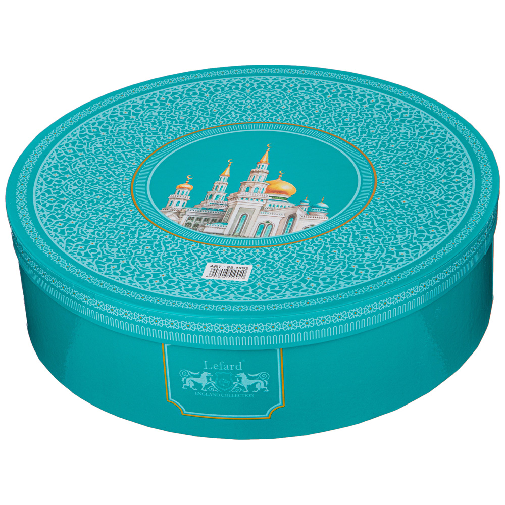 ТМ LEFARD представляет эксклюзивную коллекцию посуды «МЕЧЕТЬ». Кружки, чайные пары, наборы чайных пар, декоративные тарелки выполнены из высококачественного тонкостенного фарфора. При участии служителей Московской соборной мечети, одной из самых крупных в Европе, создана эта великолепная и торжественная коллекция. Восточный орнамент, изображение мечети, транскрипция Сур из Корана на кириллице, история Московской соборной мечети в нескольких любимых мусульманами цветах с отделкой золотом украшают изделия. Каждое изделие упаковано в цветную или подарочную коробки. Это прекрасный мусульманский подарок, всегда нужный и теплый. Относитесь к нему бережно и с почтением. Посуду коллекции можно использовать как в повседневной жизни, так и на торжественном приеме. Не рекомендуется мыть в посудомоечной машине и использовать в микроволновой печи.