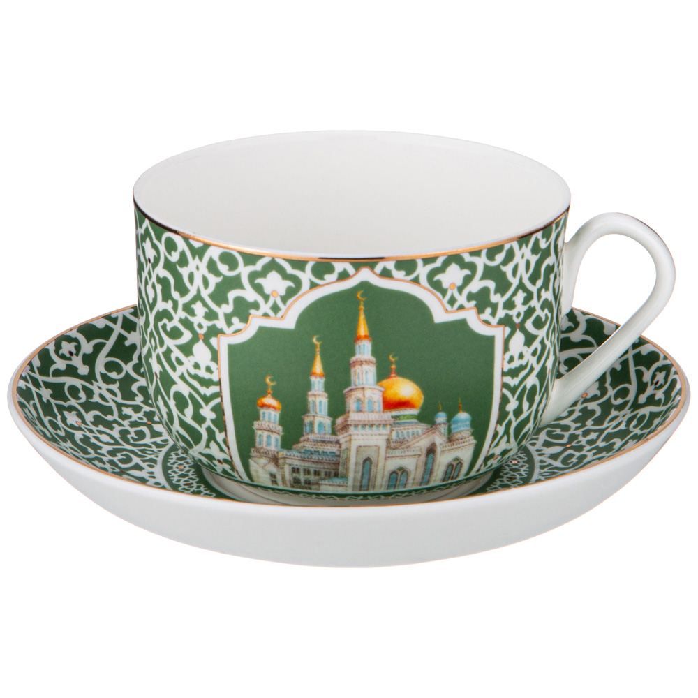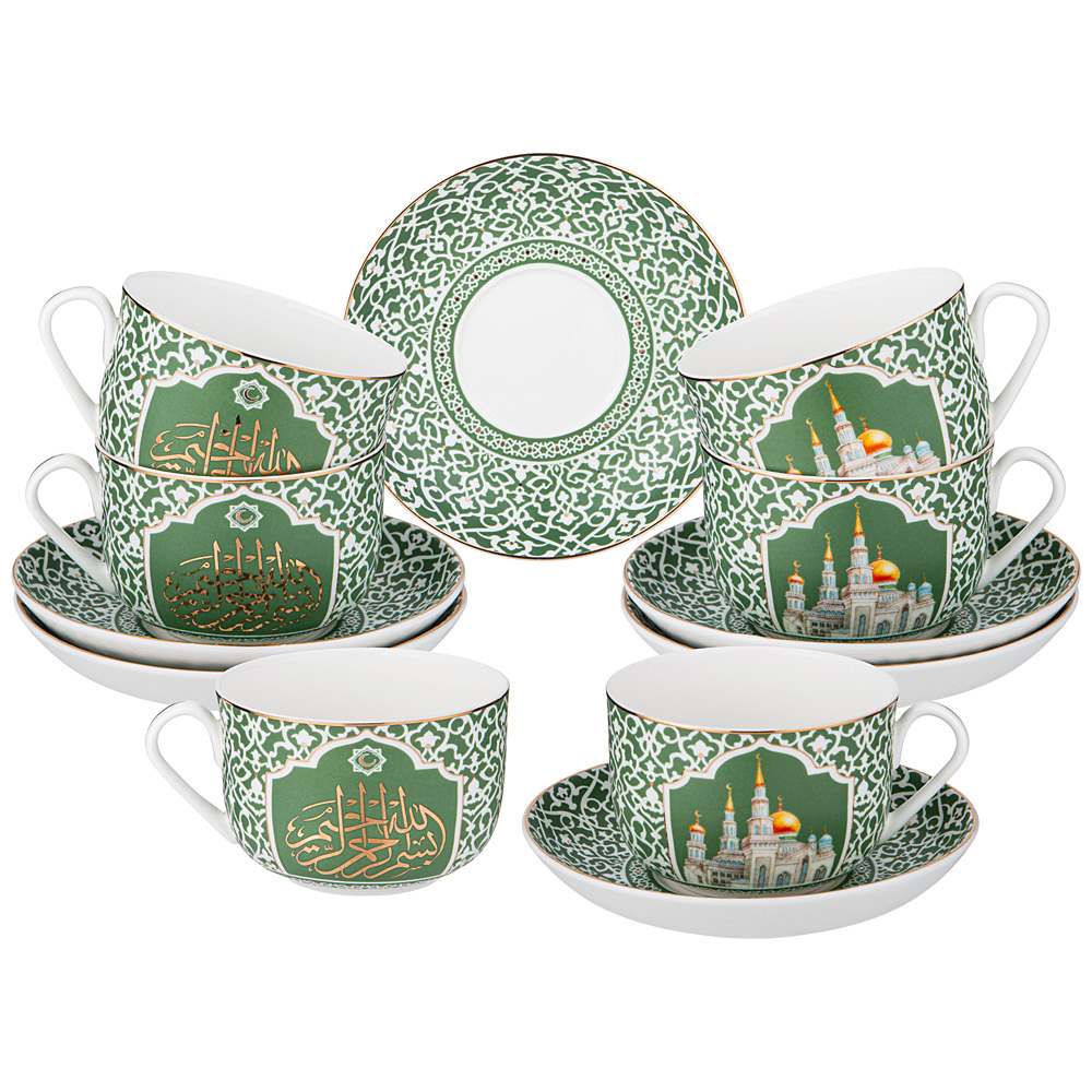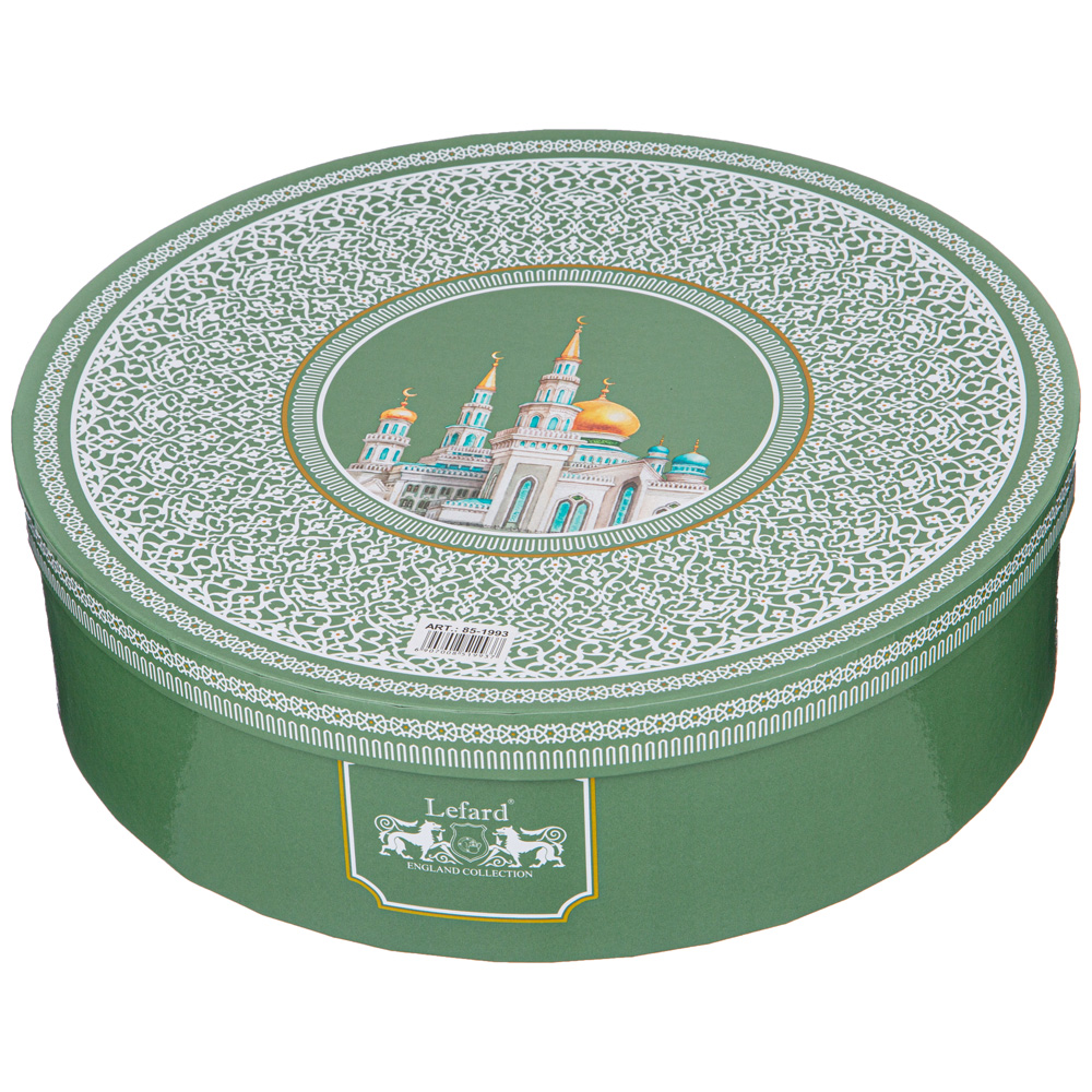 ТМ LEFARD представляет эксклюзивную коллекцию посуды «МЕЧЕТЬ». Кружки, чайные пары, наборы чайных пар, декоративные тарелки выполнены из высококачественного тонкостенного фарфора. При участии служителей Московской соборной мечети, одной из самых крупных в Европе, создана эта великолепная и торжественная коллекция. Восточный орнамент, изображение мечети, транскрипция Сур из Корана на кириллице, история Московской соборной мечети в нескольких любимых мусульманами цветах с отделкой золотом украшают изделия. Каждое изделие упаковано в цветную или подарочную коробки. Это прекрасный мусульманский подарок, всегда нужный и теплый. Относитесь к нему бережно и с почтением. Посуду коллекции можно использовать как в повседневной жизни, так и на торжественном приеме. Не рекомендуется мыть в посудомоечной машине и использовать в микроволновой печи.