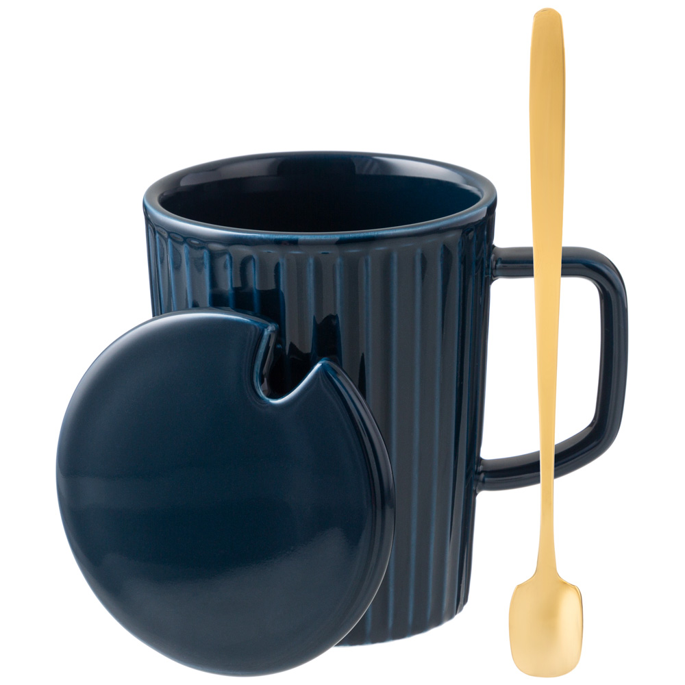 КРУЖКА LEFARD "HERBAL" С КРЫШКОЙ И МЕТАЛЛ. ЛОЖКОЙ 350 МЛ СИНЯЯ (КОР=48ШТ.)