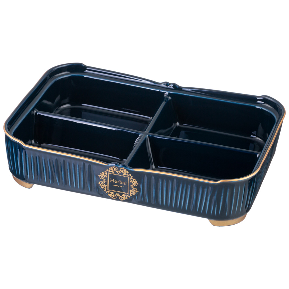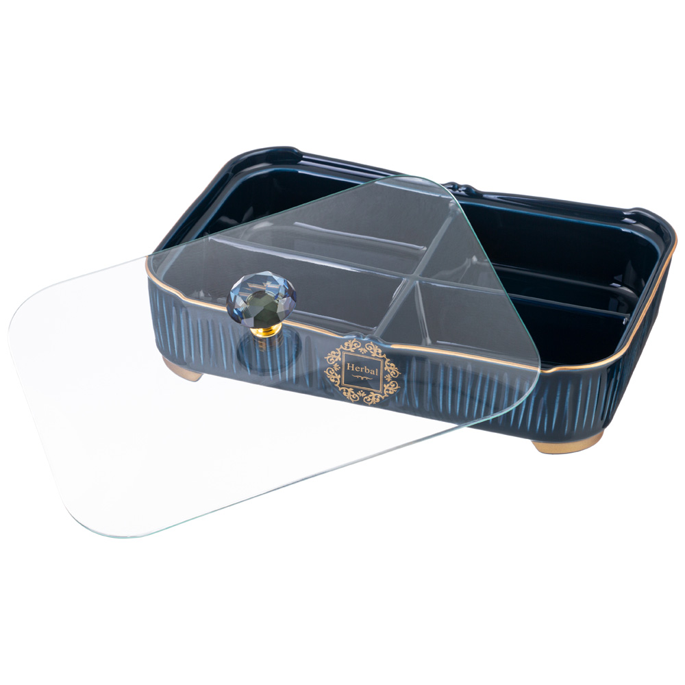 МЕНАЖНИЦА LEFARD "HERBAL" 4 СЕКЦИИ 31*22*11 СМ СО СТЕКЛЯННОЙ КРЫШКОЙ СИНЯЯ (КОР=6ШТ.)