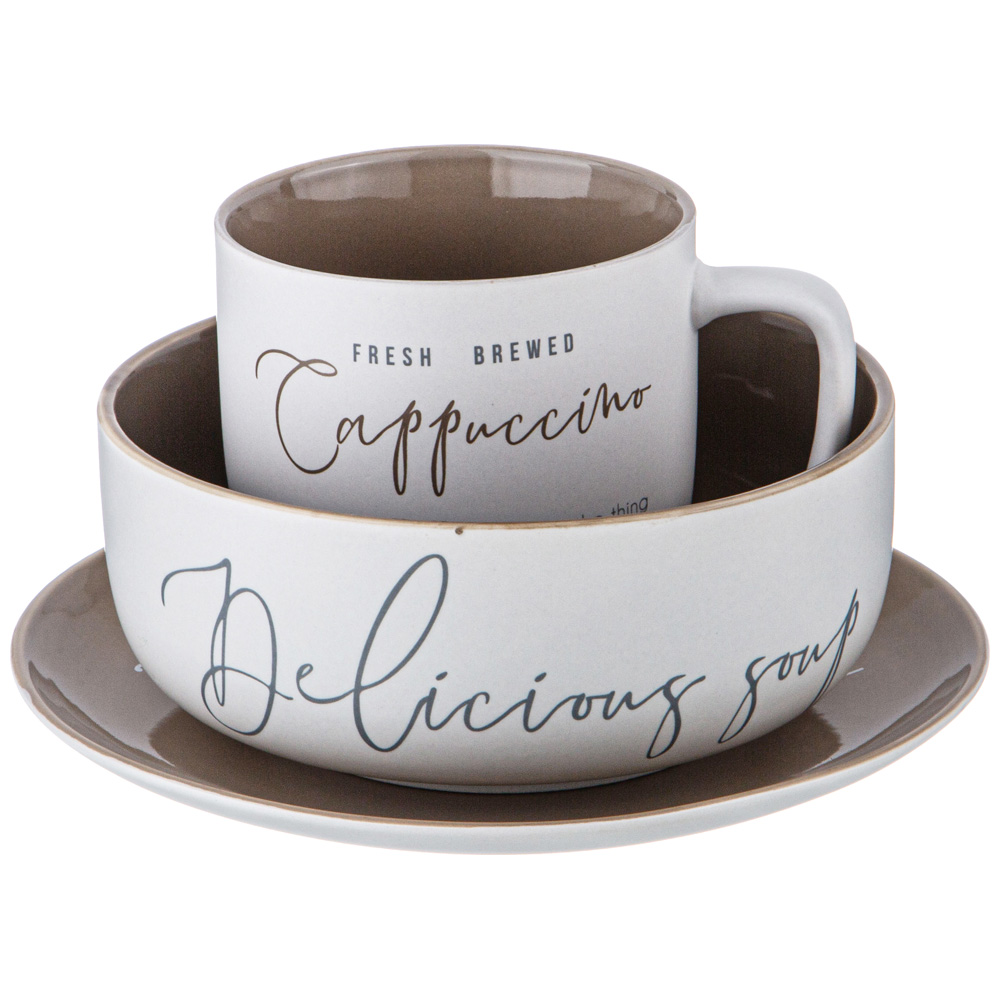 НАБОР ПОСУДЫ LEFARD 3 ПРЕДМЕТА "COFFEEMANIA" изготовлен из фарфора высокого качества и предназначен как для ручной мойки, так и для мытья в посудомоечной машине, может использоваться для разогревания еды в микроволновке. Такие кухонные принадлежности станут прекрасным дополнением для Вашей столовой посуды как дома на кухне, так и в кафе, ресторане или офисе. Комплект посуды из 3 приборов идеален для использования в повседневной жизни и для приема гостей.