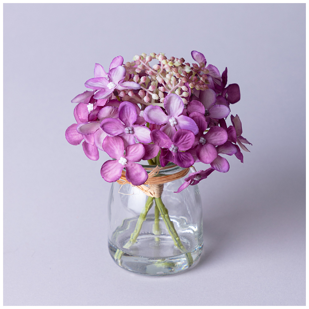 БУКЕТ ИСКУССТВЕННЫХ ЦВЕТОВ В КРУГЛОЙ ВАЗЕ ВЫСОТА= 14СМ (МАЛ=8ШТ./КОР=64ШТ.)