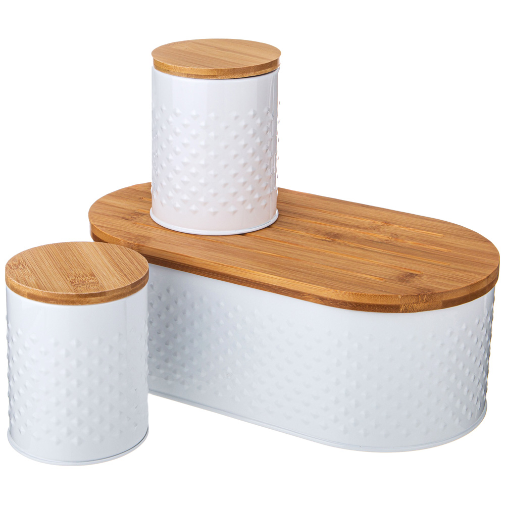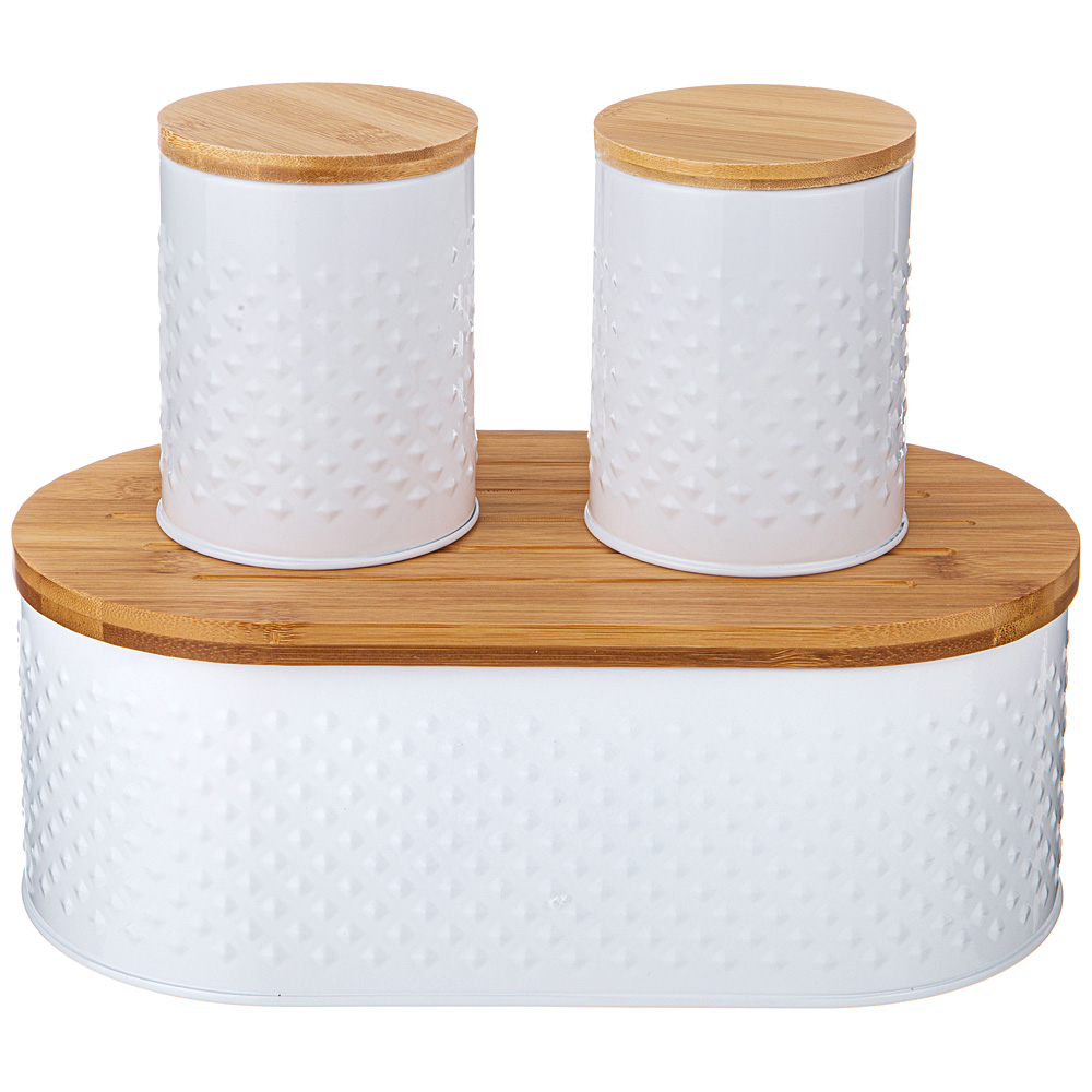 ХЛЕБНИЦА AGNESS 33,8Х18Х12СМ С 2-МЯ БАНКАМИ Д/СЫП. ПРОД. D10СМ, H11СМ, WHITE