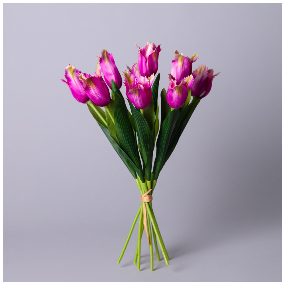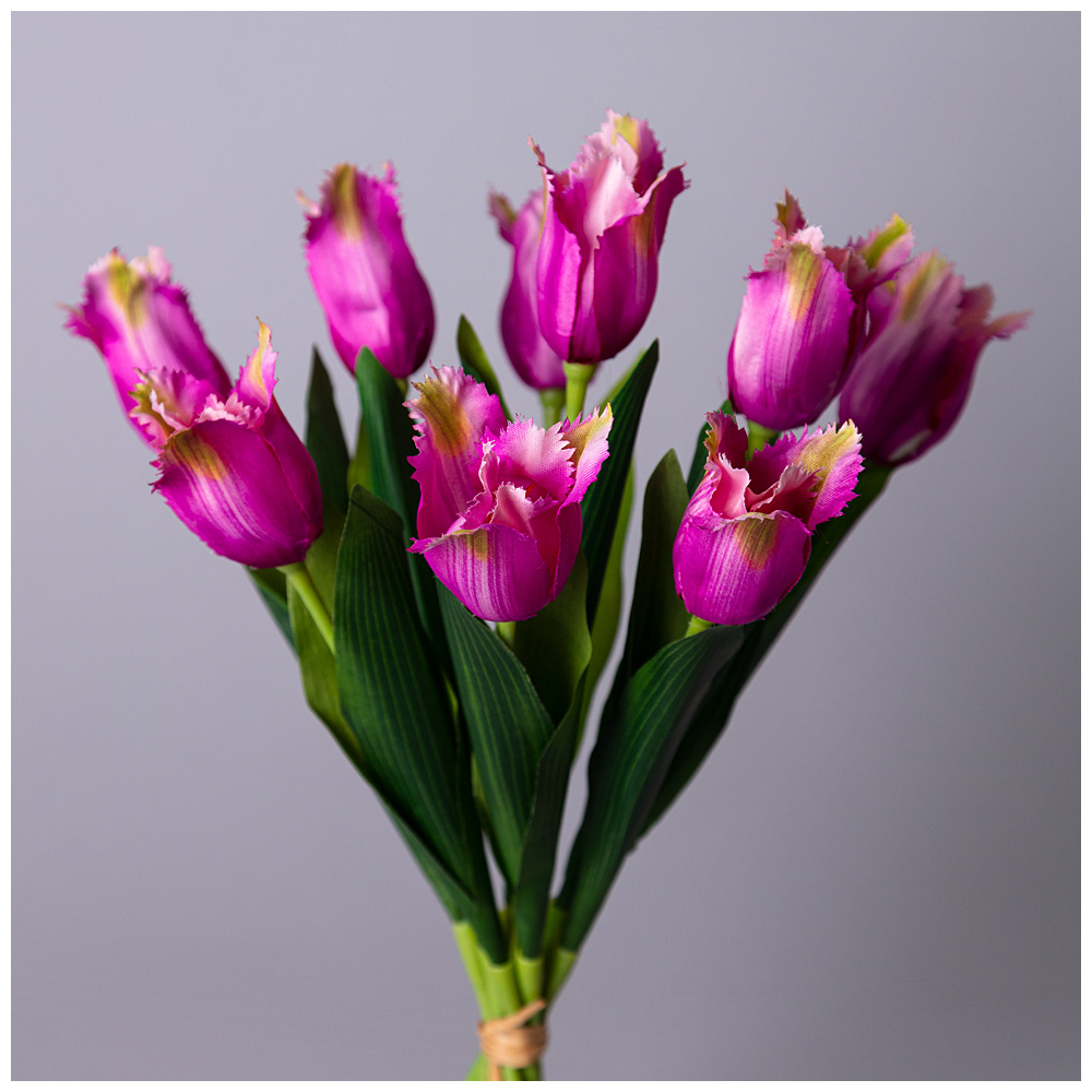 БУКЕТ ИСКУССТВЕННЫЙ ИЗ 9 ТЮЛЬПАНОВ ДЛИНА=39СМ , ЦВЕТ КАРМИН МАЛ.УП.=24ШТ