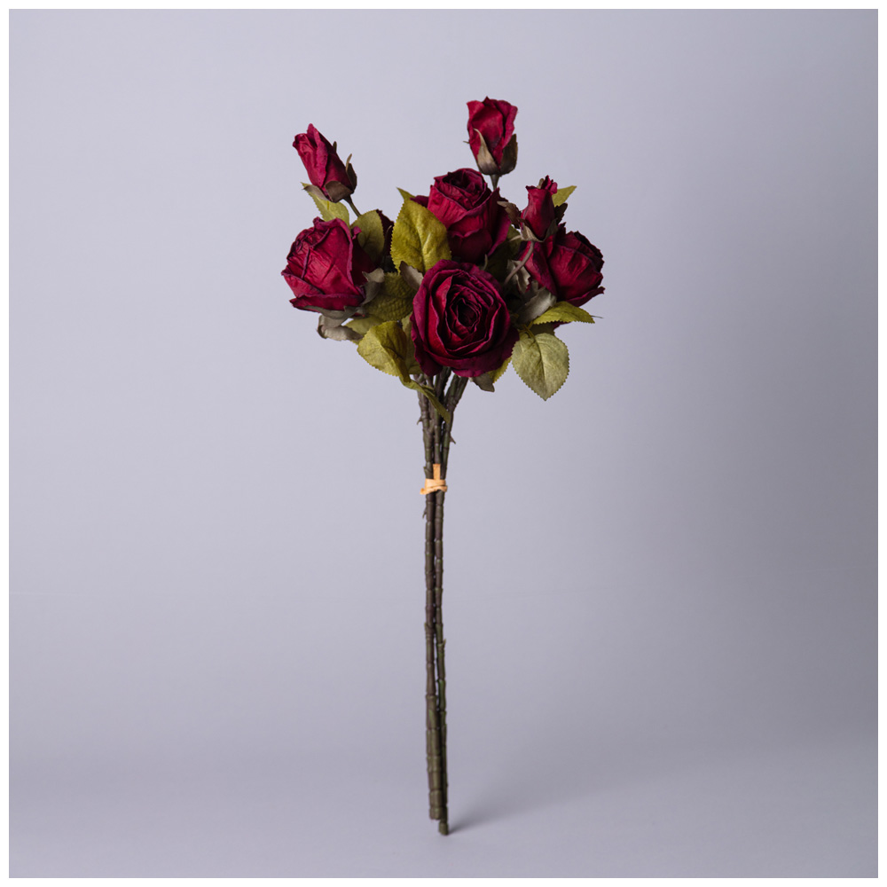 БУКЕТ ИЗ ИСКУССТВЕННЫХ РОЗ ДЛИНА=53СМ ,ЦВЕТ БОРДО МАЛ.УП.=12ШТ