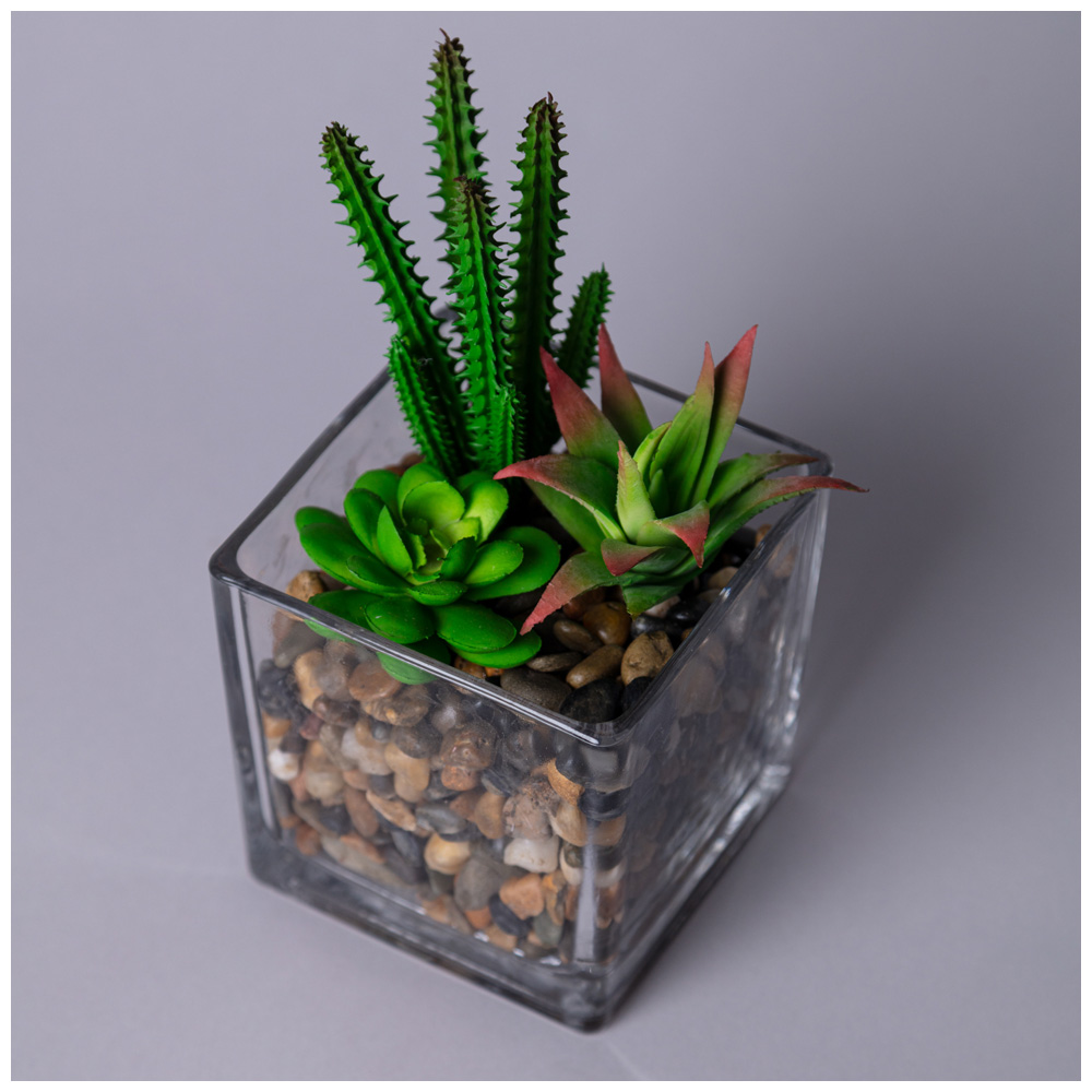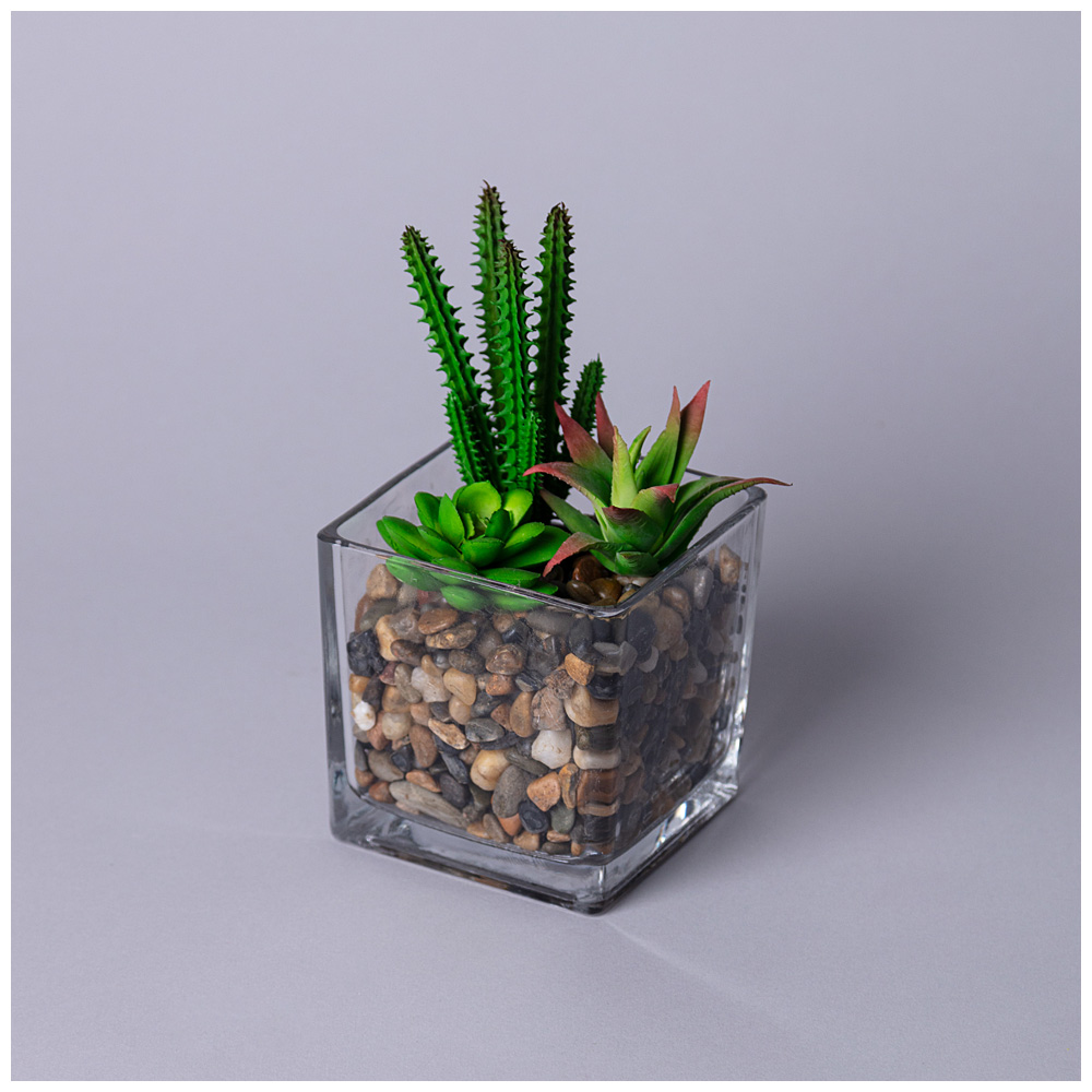 СУККУЛЕНТ ИСКУССТВЕННЫЙ В ПРОЗРАЧНОМ ГОРШКЕ 11*17СМ МАЛ.УП.=8ШТ