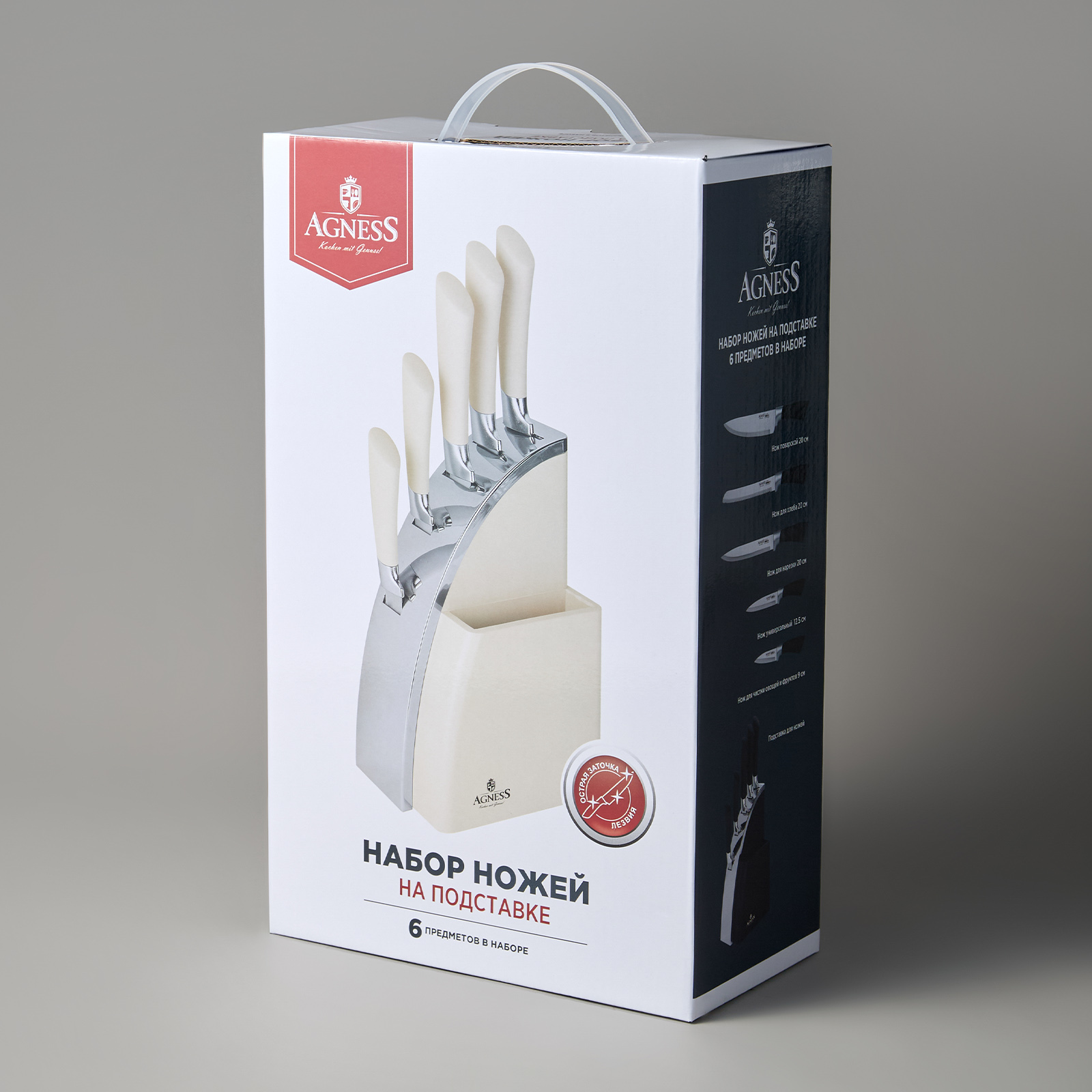 НАБОР НОЖЕЙ AGNESS НА ПЛАСТИКОВОЙ ПОДСТАВКЕ, 6 ПРЕДМЕТОВ