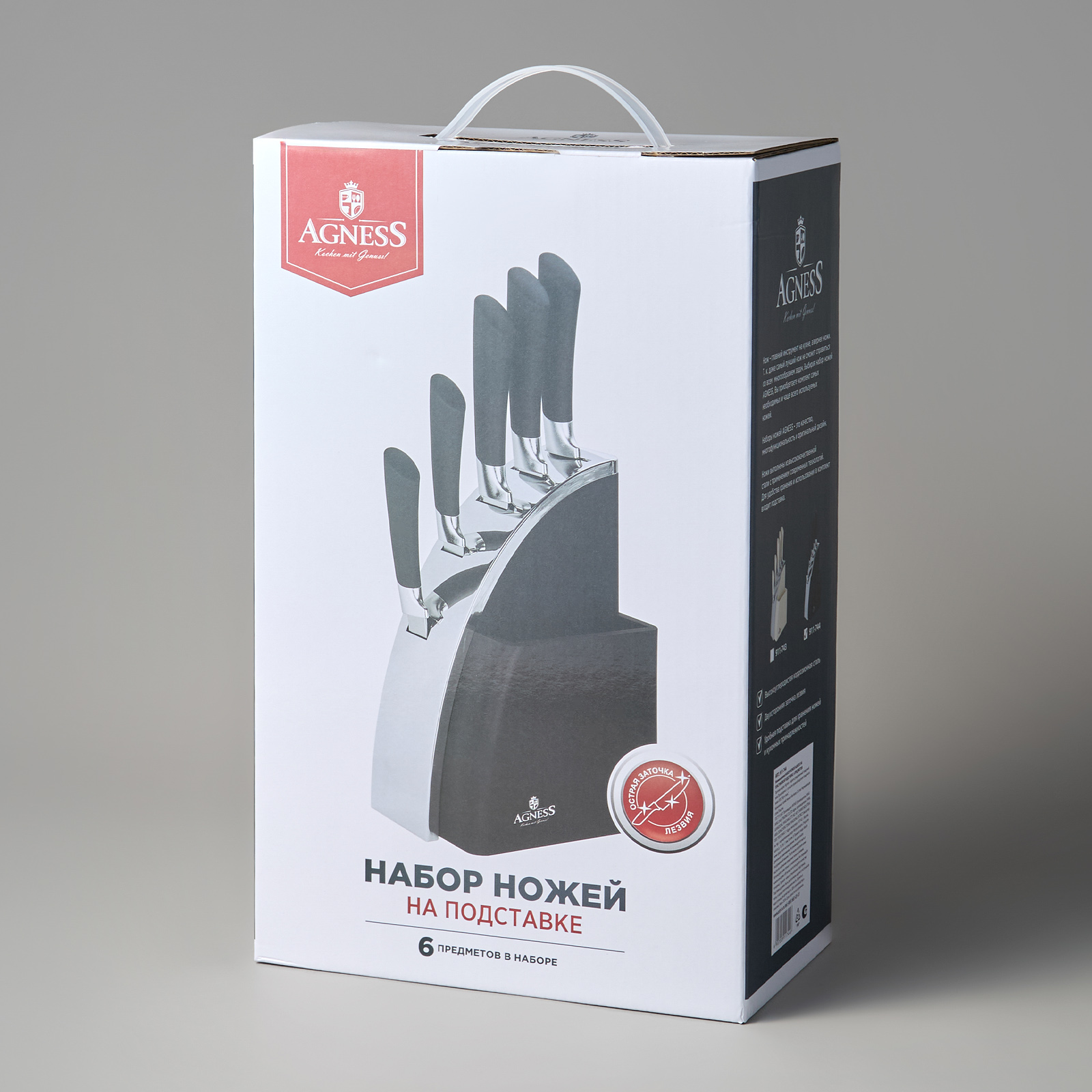 НАБОР НОЖЕЙ AGNESS НА ПЛАСТИКОВОЙ ПОДСТАВКЕ, 6 ПРЕДМЕТОВ