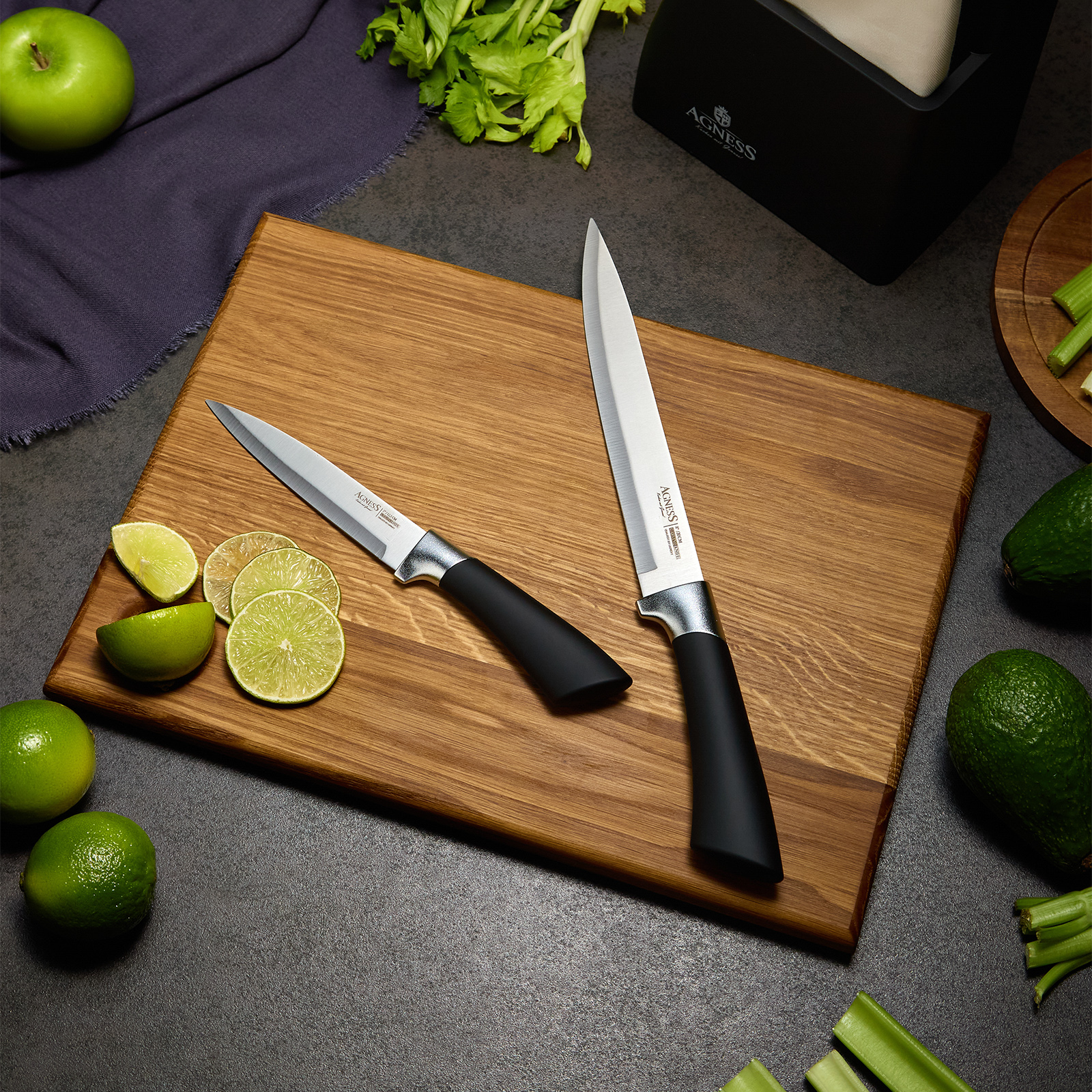 Нож - главный инструмент на кухне, а вернее ножи, т.к. даже самый лучший нож не сможет справиться со всем многообразием задач. Выбирая набор ножей AGNESS - Вы приобретаете комплект самых необходимых и чаще всего используемых ножей. Преимущества ножей AGNESS:
