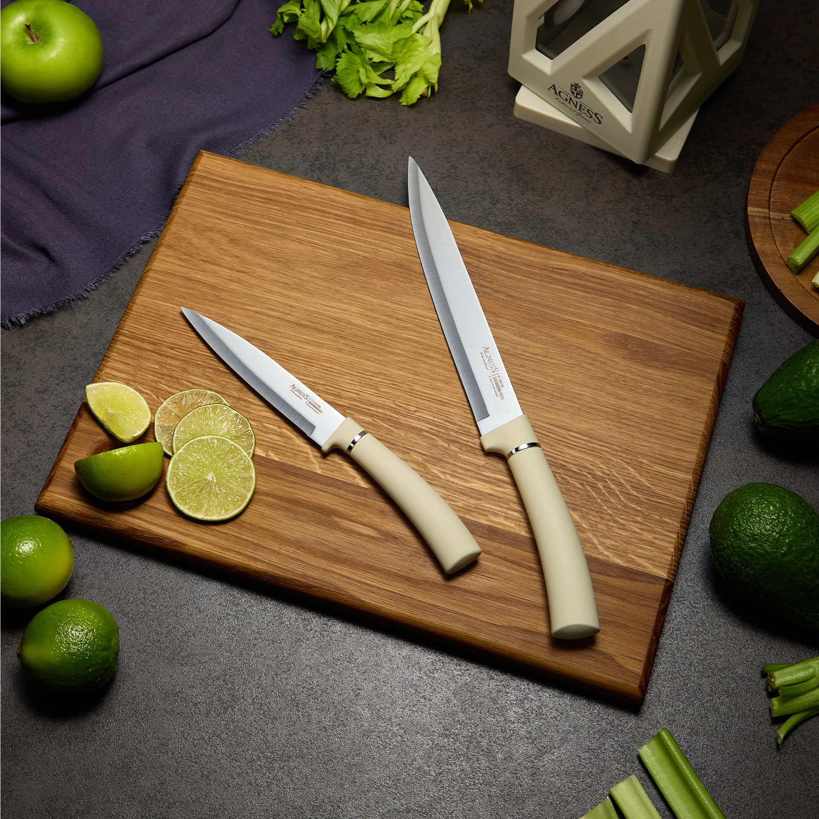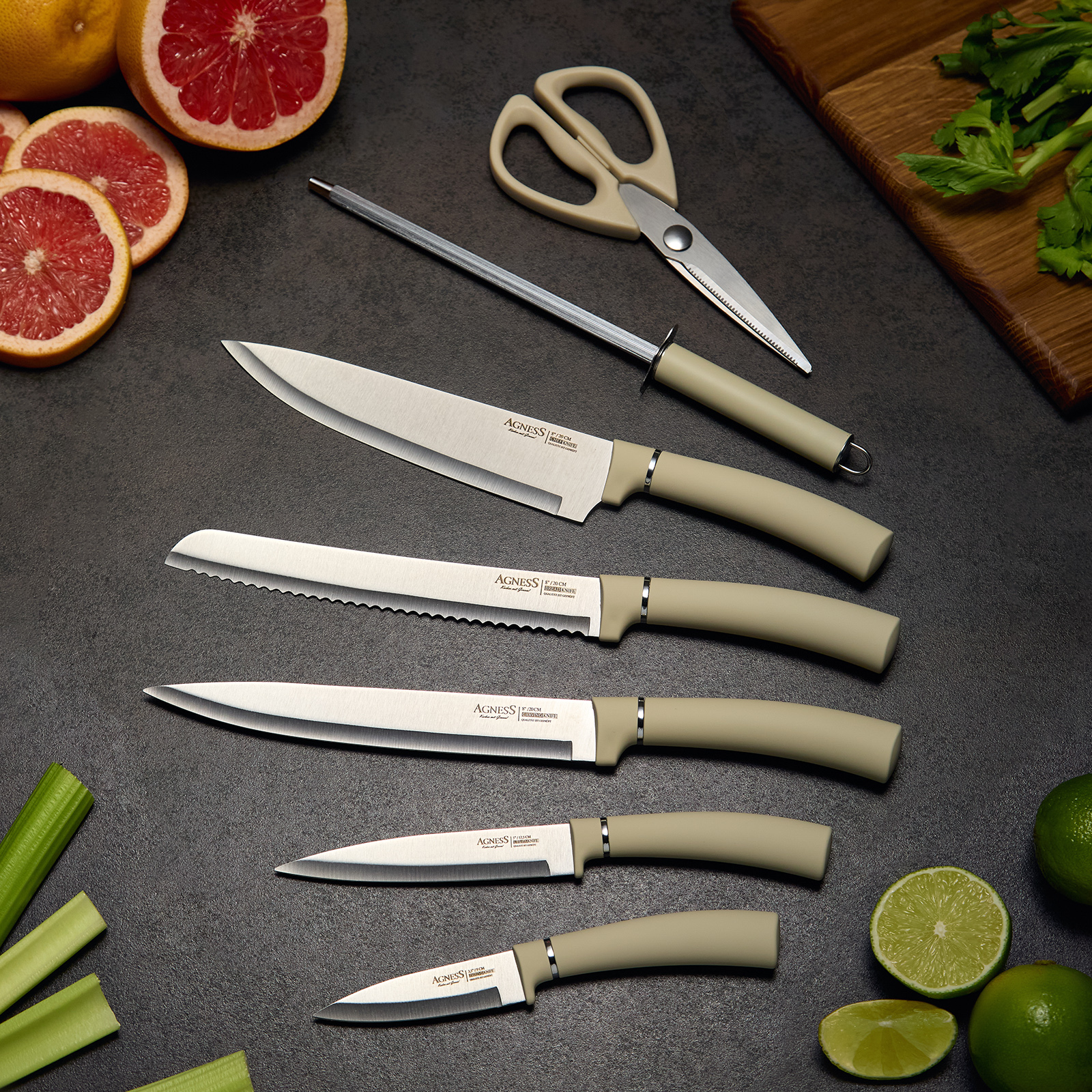 Нож - главный инструмент на кухне, а вернее ножи, т.к. даже самый лучший нож не сможет справиться со всем многообразием задач. Выбирая набор ножей AGNESS - Вы приобретаете комплект самых необходимых и чаще всего используемых ножей. Преимущества ножей AGNESS: