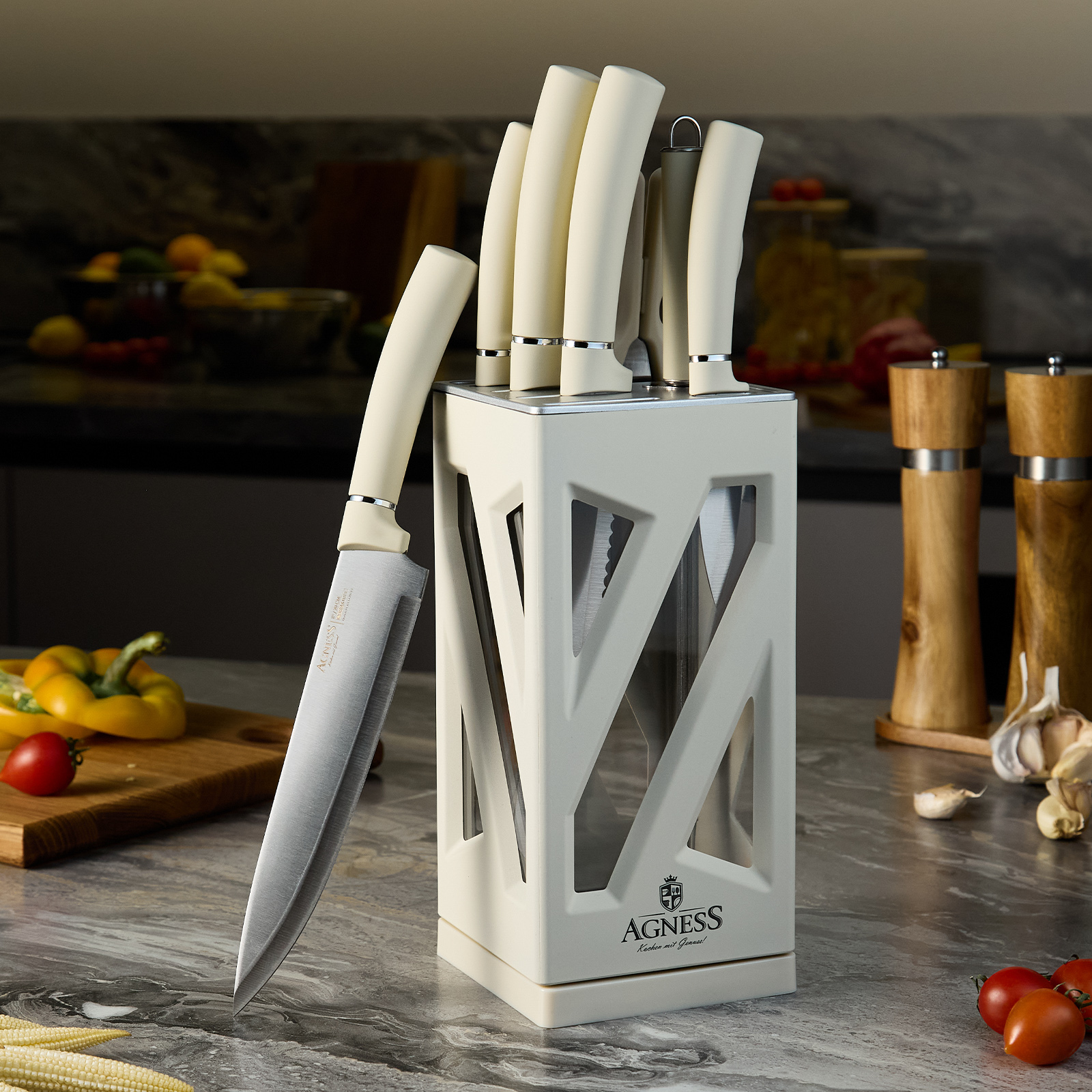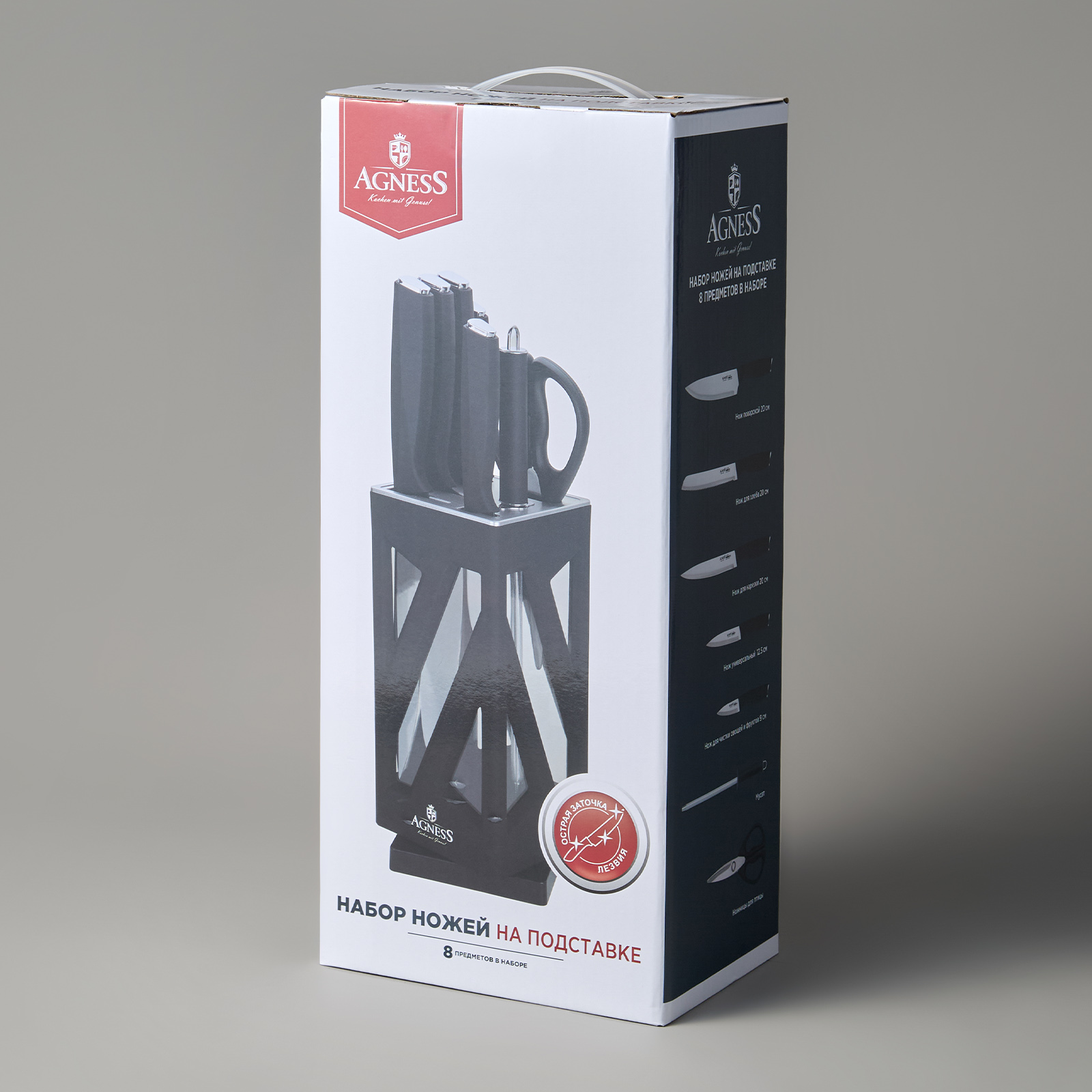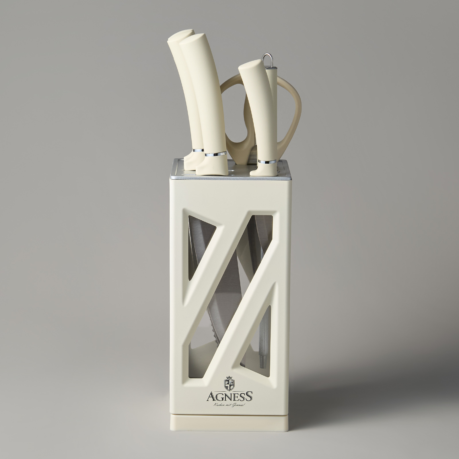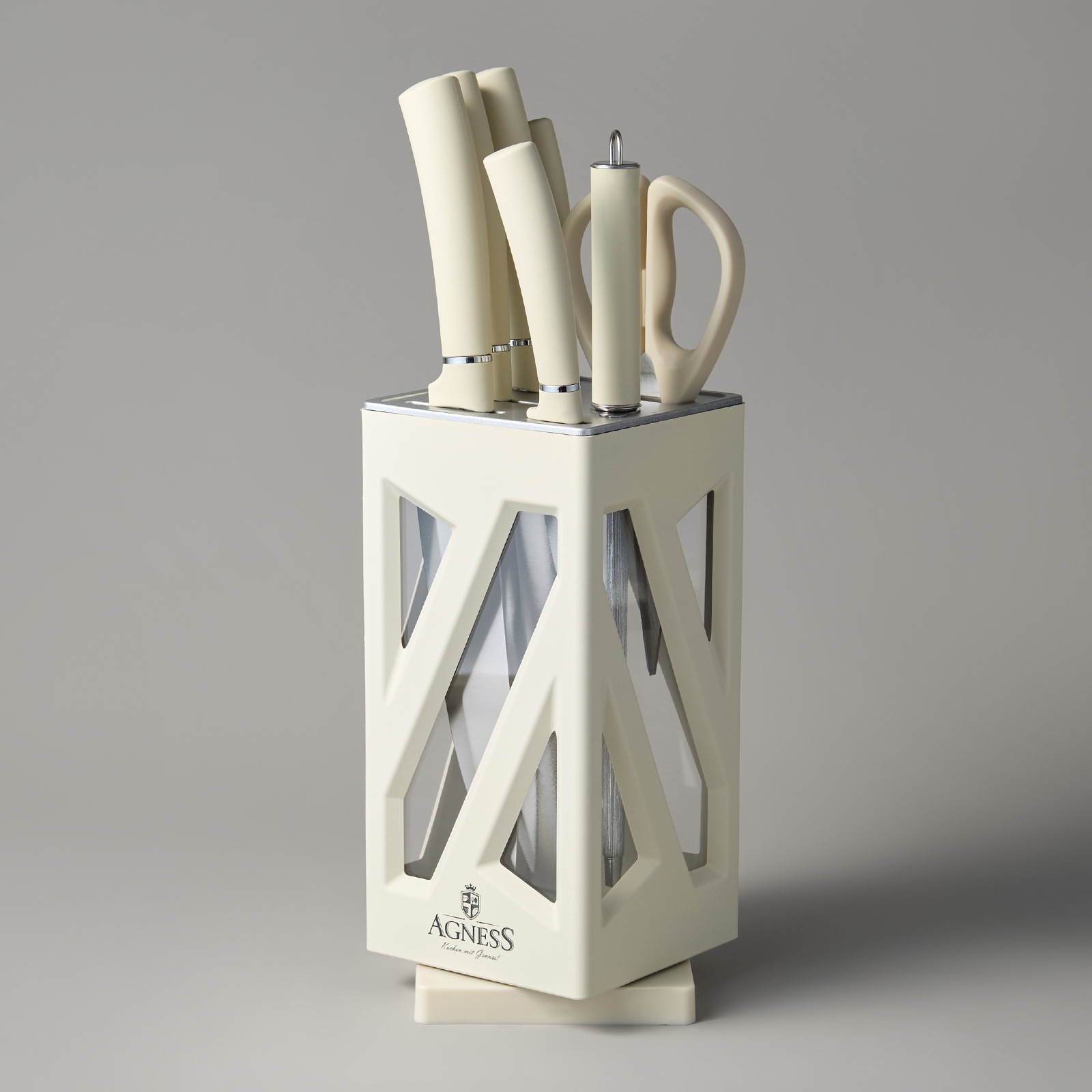 НАБОР НОЖЕЙ AGNESS НЖС НА ПЛАСТИКОВОЙ ВРАЩАЮЩЕЙСЯ ПОДСТАВКЕ 8 ПР.