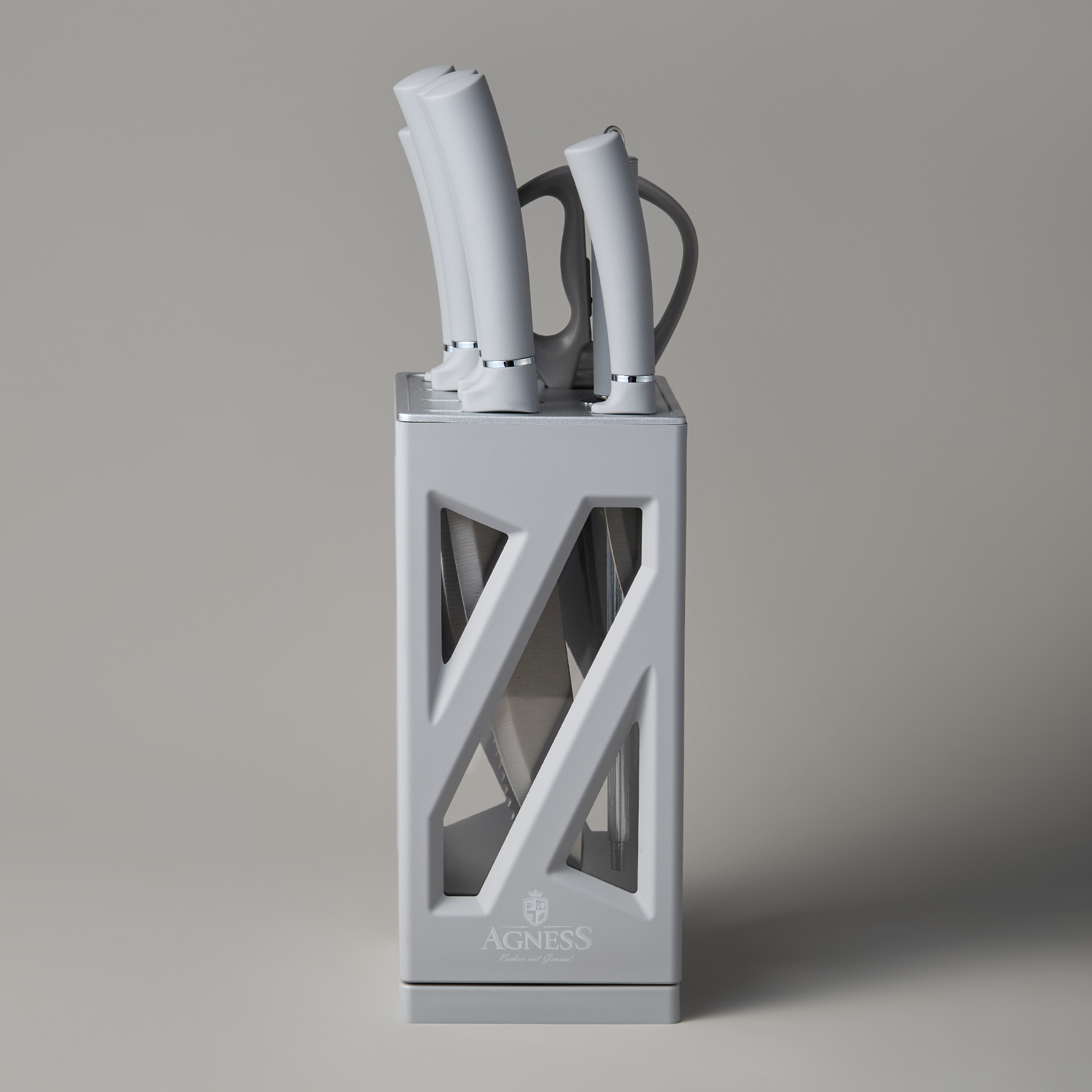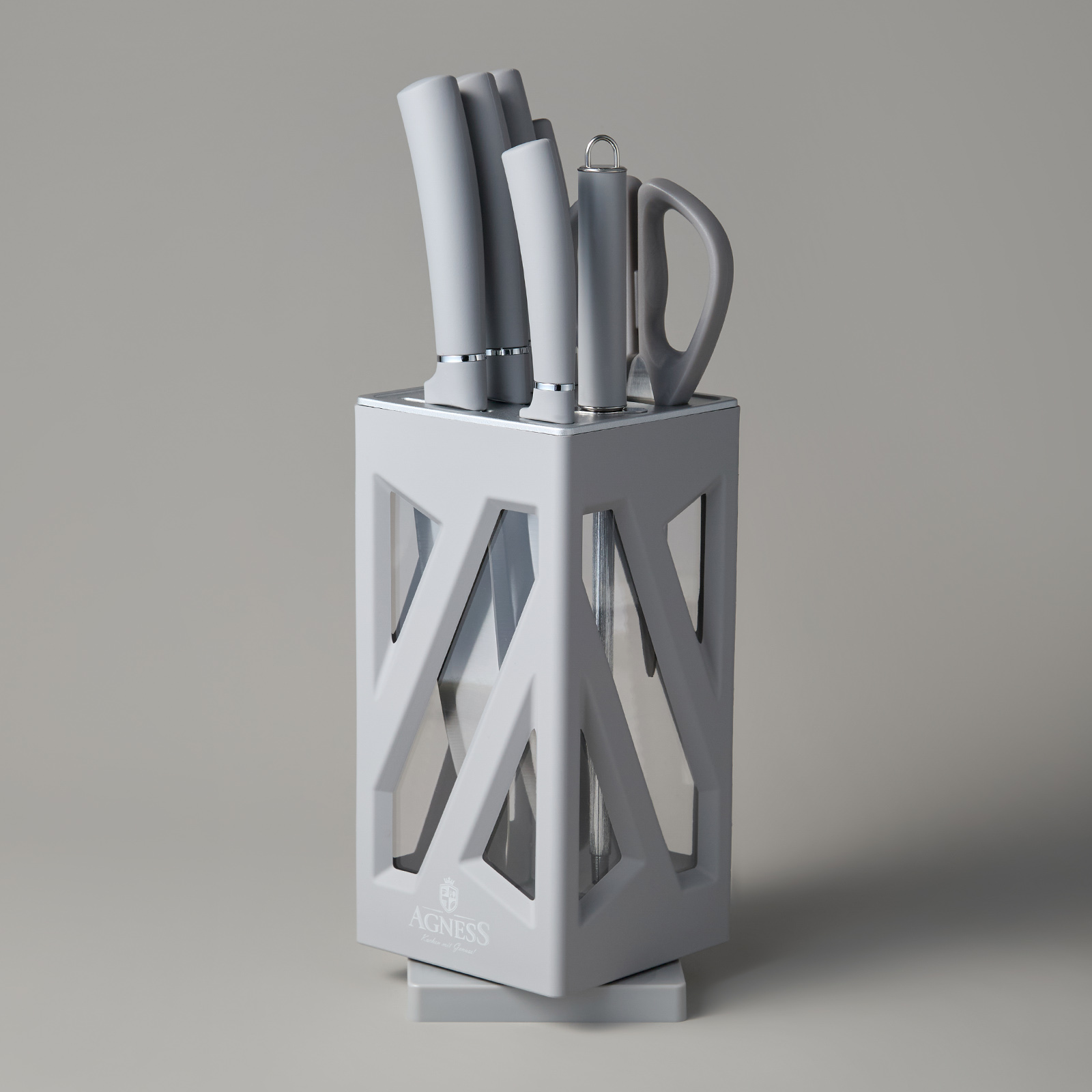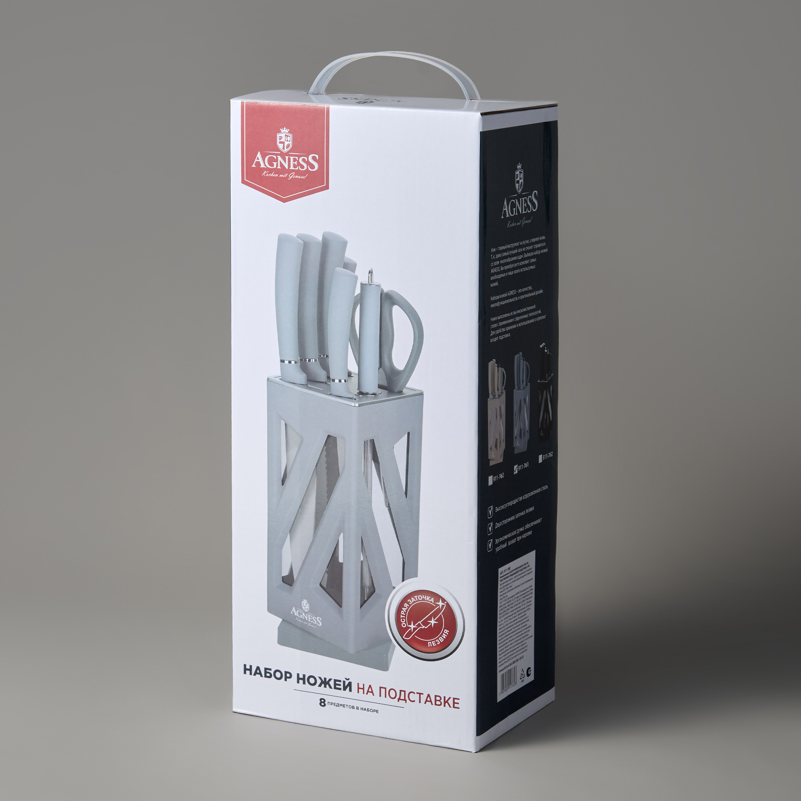 НАБОР НОЖЕЙ AGNESS НЖС НА ПЛАСТИКОВОЙ ВРАЩАЮЩЕЙСЯ ПОДСТАВКЕ 8 ПР.