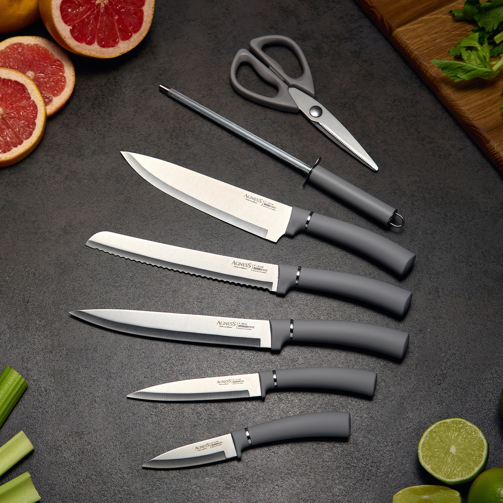 Нож - главный инструмент на кухне, а вернее ножи, т.к. даже самый лучший нож не сможет справиться со всем многообразием задач. Выбирая набор ножей AGNESS - Вы приобретаете комплект самых необходимых и чаще всего используемых ножей. Преимущества ножей AGNESS: