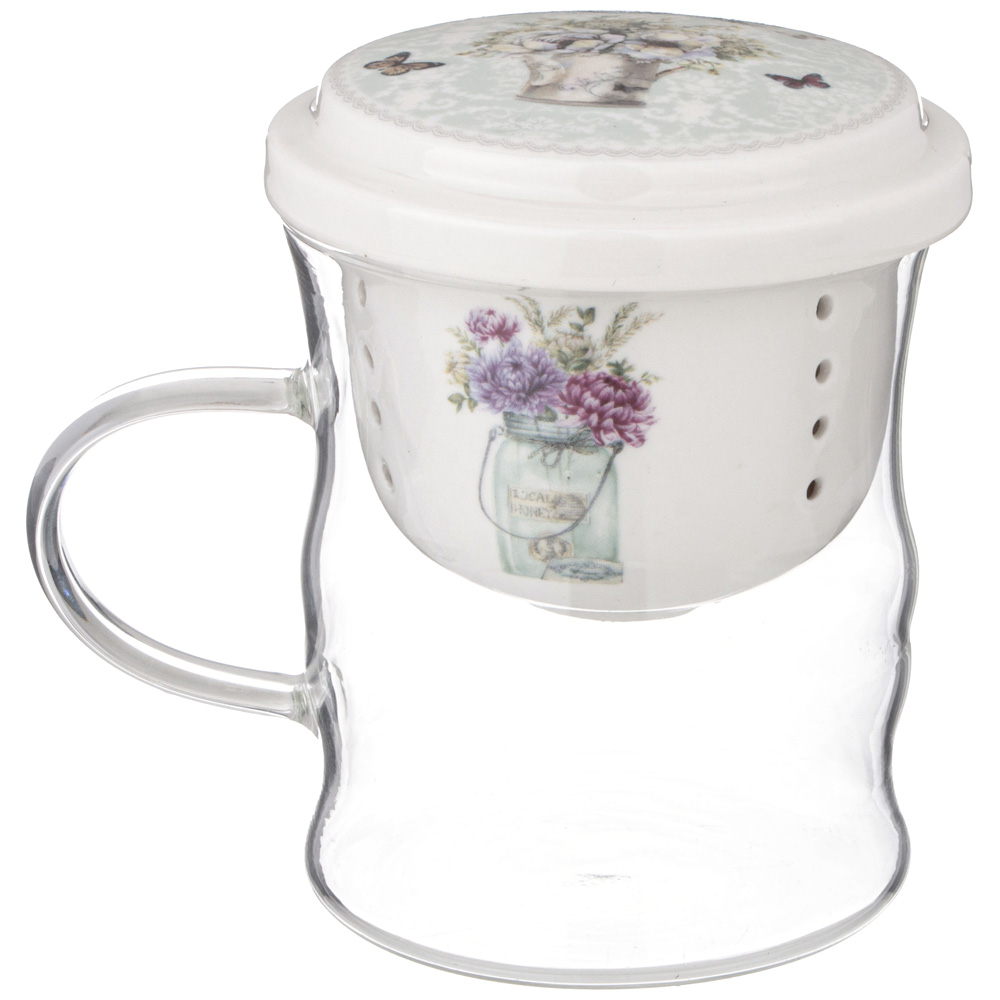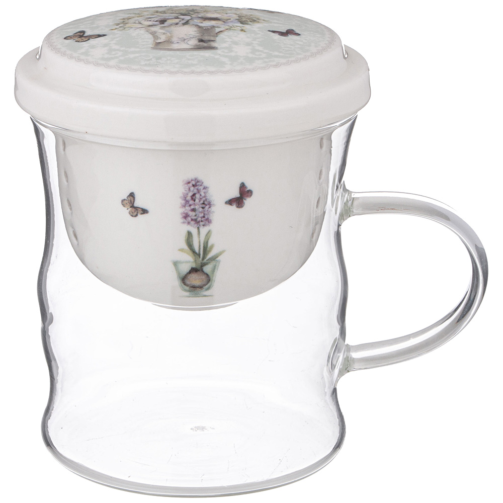 КРУЖКА СТЕКЛЯННАЯ С ФАРФОРОВЫМ СИТОМ LEFARD ЛОРИАН 420 МЛ
