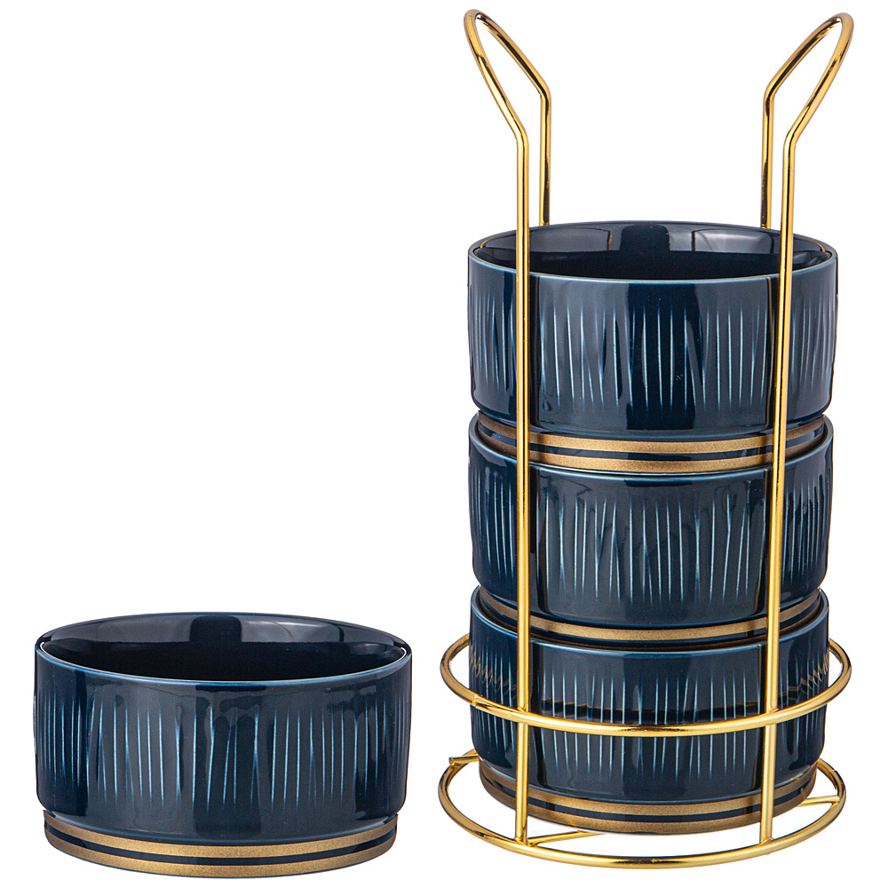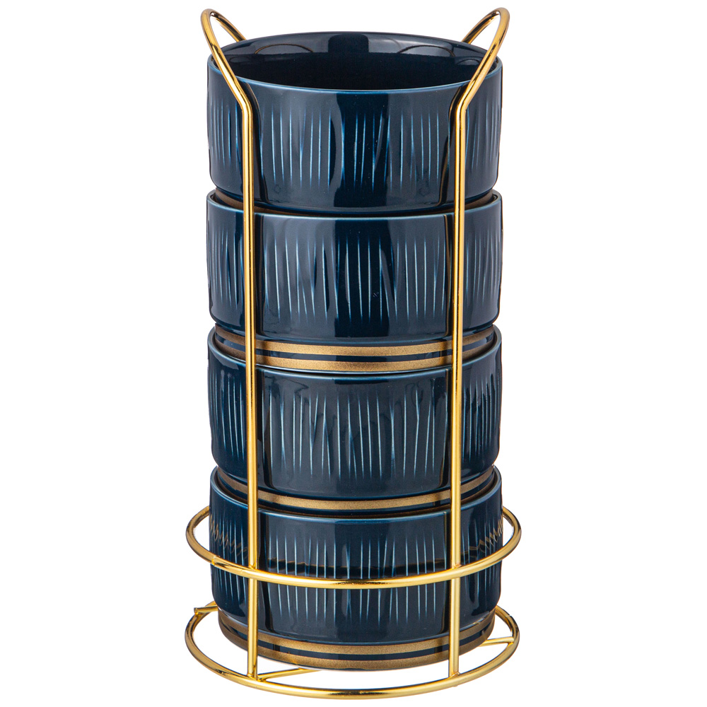 НАБОР САЛАТНИКОВ LEFARD "HERBAL" НА МЕТАЛЛ. ПОДСТАВКЕ 4 ШТ. 11,5*6 СМ 450 МЛ СИНИЙ (КОР=8НАБ.)