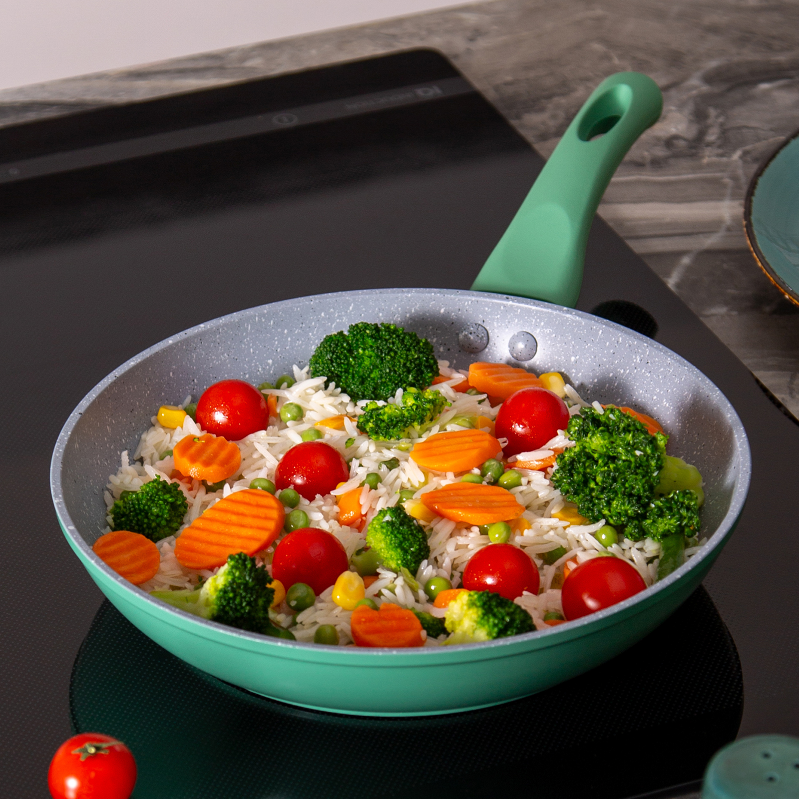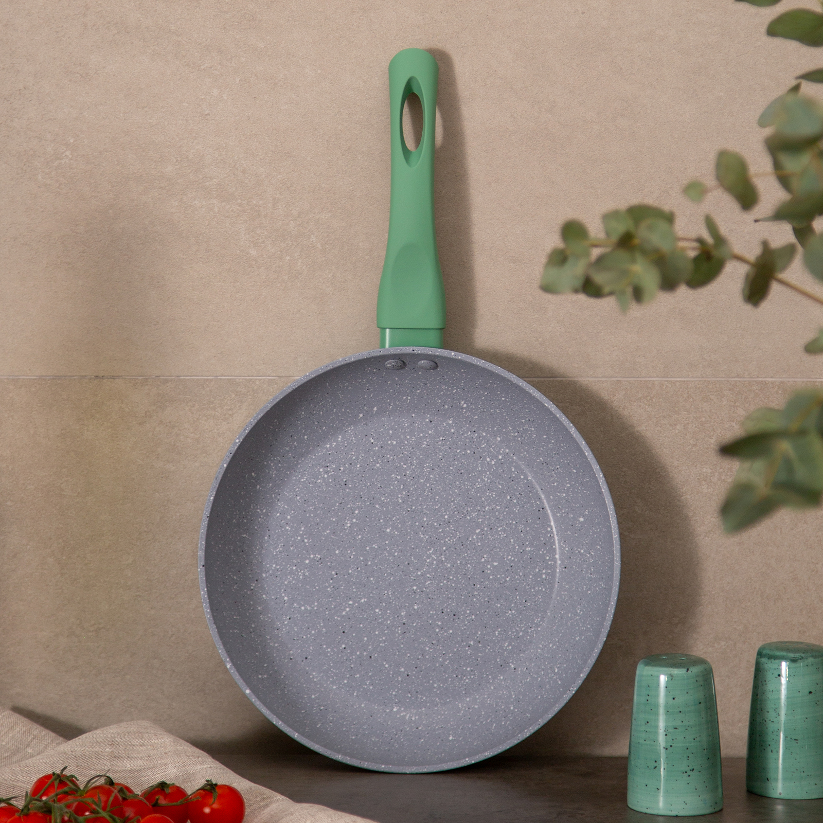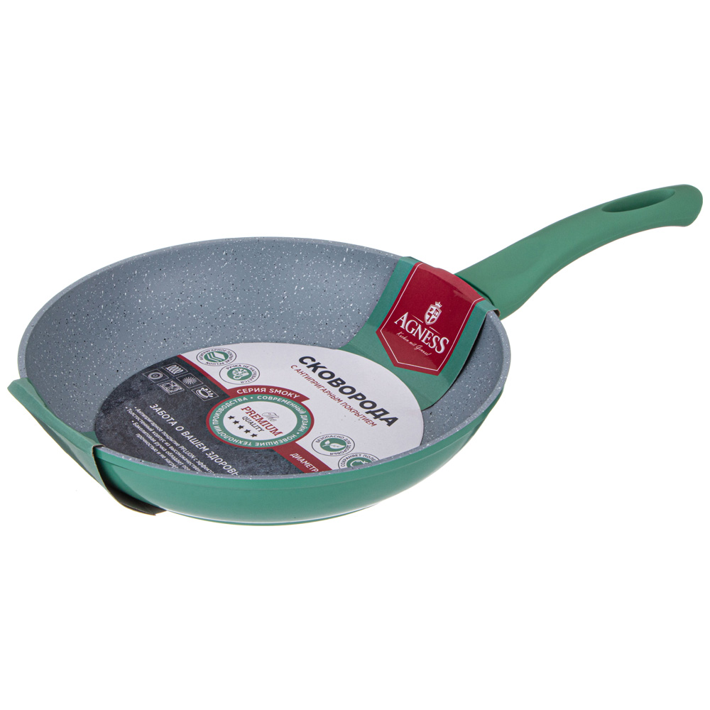 СКОВОРОДА AGNESS С АНТИПРИГАРНЫМ ПОКРЫТИЕМ "SMOKY"- это идеальный выбор для тех, кто ценит удобство и функциональность в посуде. Одним из главных достоинств этой сковороды является ее антипригарное покрытие, которое позволяет готовить без использования большого количества масла, а также обеспечивает равномерное распределение тепла. Благодаря этому, продукты готовятся быстрее и сохраняют свои полезные свойства.Быстрое нагревание сокращает время приготовления и сохраняет вкус и аромат продуктов. Многослойная структура покрытия обеспечивает превосходные эксплуатационные качества и увеличивает срок службы, не содержит PFOA.Эргономичная ручка из бакелита с мягким покрытием SOFT TOUCH не нагревается и не плавится, обеспечивает безопасное использование сковородки в процессе приготовления пищи. Посуда AGNESS - это современный дизайн и новейшие технологии производства.