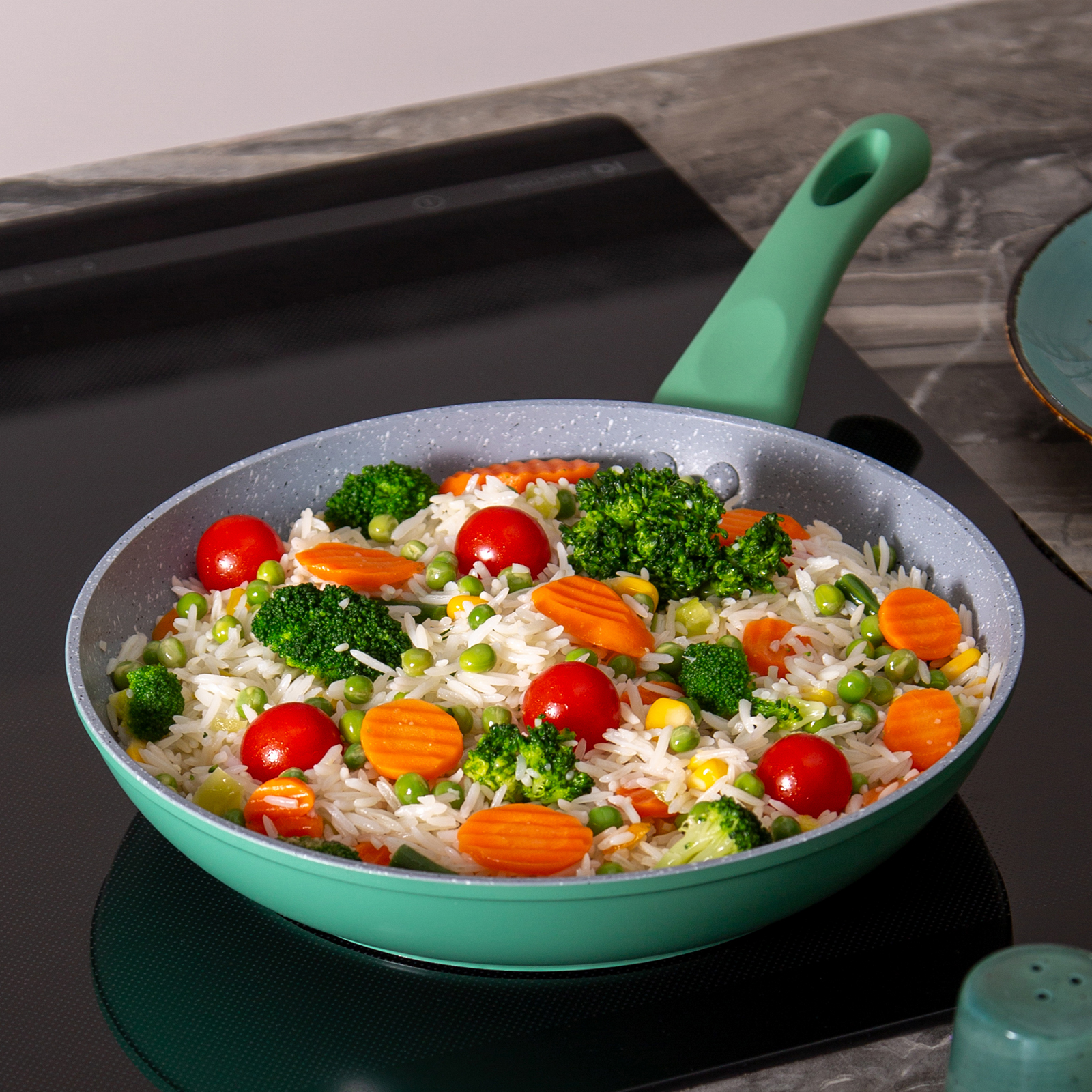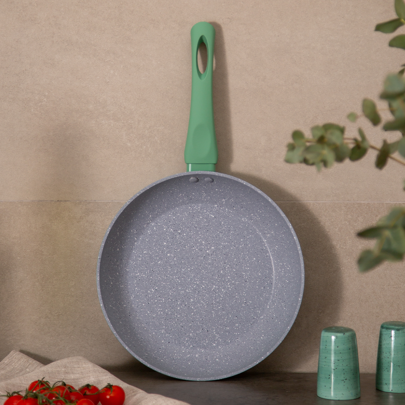 СКОВОРОДА AGNESS С АНТИПРИГАРНЫМ ПОКРЫТИЕМ "SMOKY"- это идеальный выбор для тех, кто ценит удобство и функциональность в посуде. Одним из главных достоинств этой сковороды является ее антипригарное покрытие, которое позволяет готовить без использования большого количества масла, а также обеспечивает равномерное распределение тепла. Благодаря этому, продукты готовятся быстрее и сохраняют свои полезные свойства.Быстрое нагревание сокращает время приготовления и сохраняет вкус и аромат продуктов. Многослойная структура покрытия обеспечивает превосходные эксплуатационные качества и увеличивает срок службы, не содержит PFOA.Эргономичная ручка из бакелита с мягким покрытием SOFT TOUCH не нагревается и не плавится, обеспечивает безопасное использование сковородки в процессе приготовления пищи. Посуда AGNESS - это современный дизайн и новейшие технологии производства.