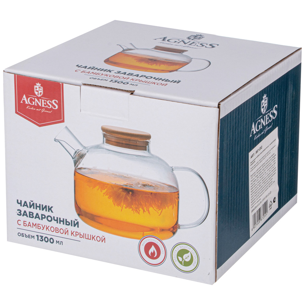 ЧАЙНИК ЗАВАРОЧНЫЙ 1300 МЛ. С БАМБУКОВОЙ КРЫШКОЙ (КОР=12ШТ.)