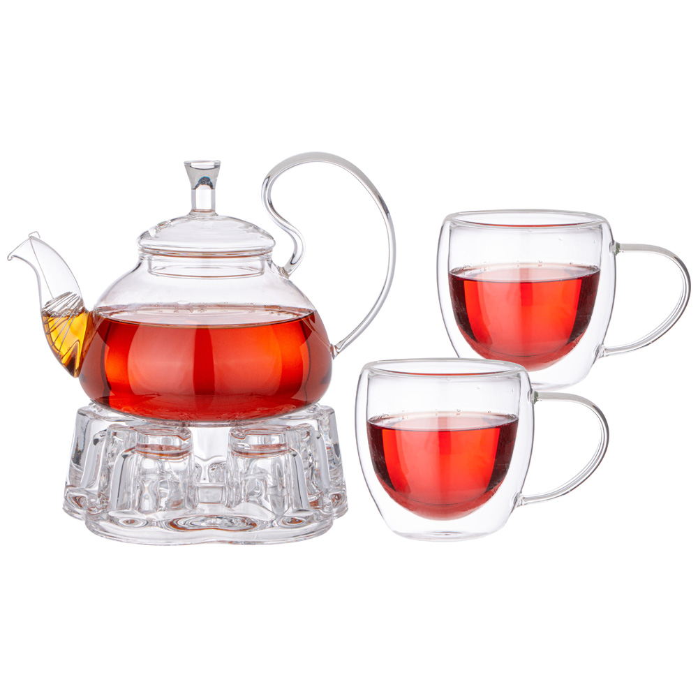 НАБОР ЧАЙНИК 600МЛ НА ПОДСТАВКЕ И 2 КРУЖКИ 250МЛ