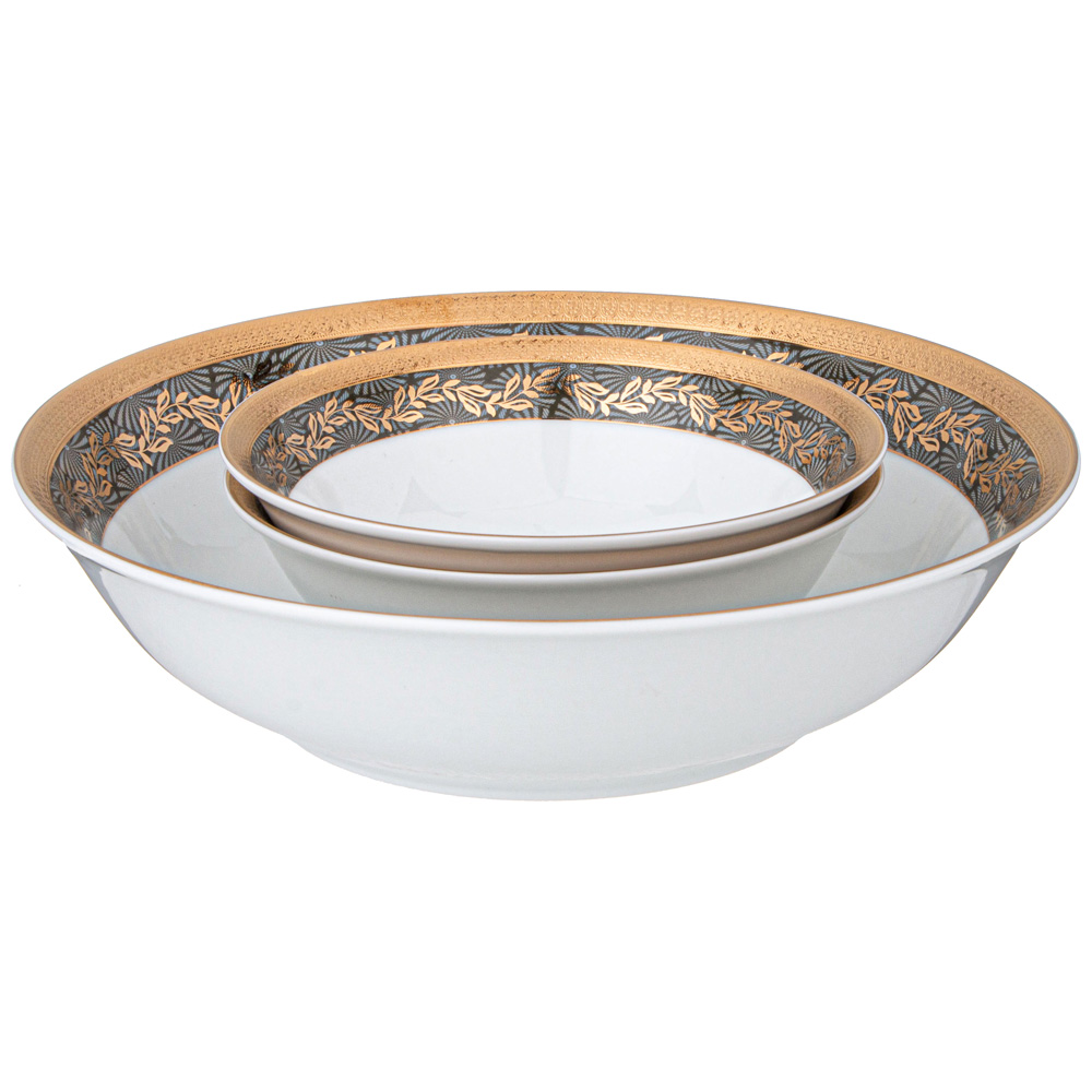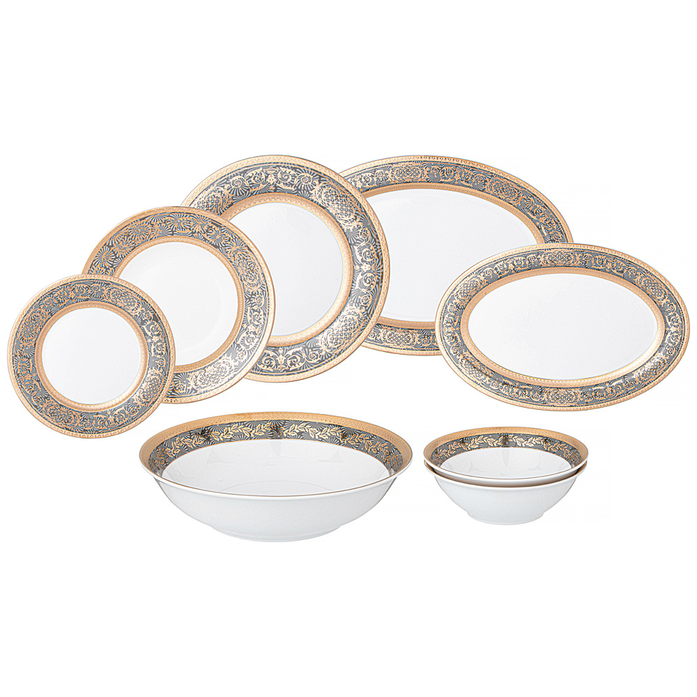 Комплектность: блюдо овальное 36*24,5 см - 1 шт., блюдо овальное 31*21 см - 1 шт., тарелка обеденная 27 см - 6 шт., тарелка закусочная 20,5 см - 6 шт., тарелка супова 24*4 см - 6 шт., салатник 23*6 см - 1 шт., салатник 14*4,5 см - 2 шт.