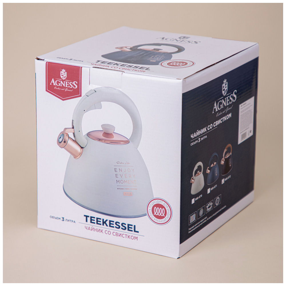 ЧАЙНИК AGNESS СО СВИСТКОМ, СЕРИЯ ТЮДОР, 3,0 Л ТЕРМОАККУМУЛИРУЮЩЕЕ ДНО, ИНДУКЦИЯ
