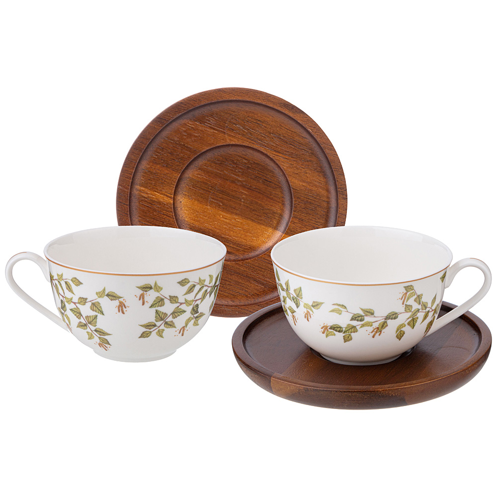 ЧАЙНЫЙ НАБОР LEFARD "БЕРЕЗКИ"НА 2 ПЕР. 4 ПР. 300 МЛ НА ДЕРЕВ. БЛЮДЦЕ (КОР=12НАБ.)