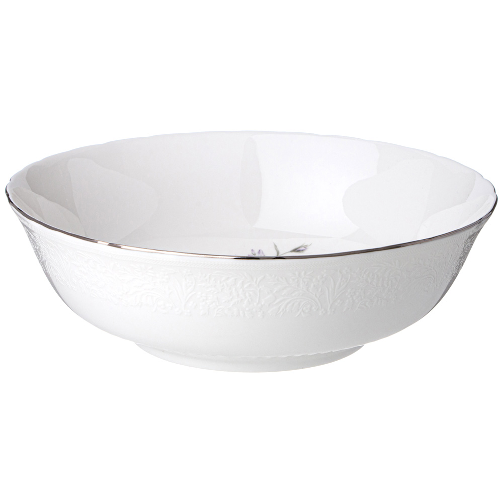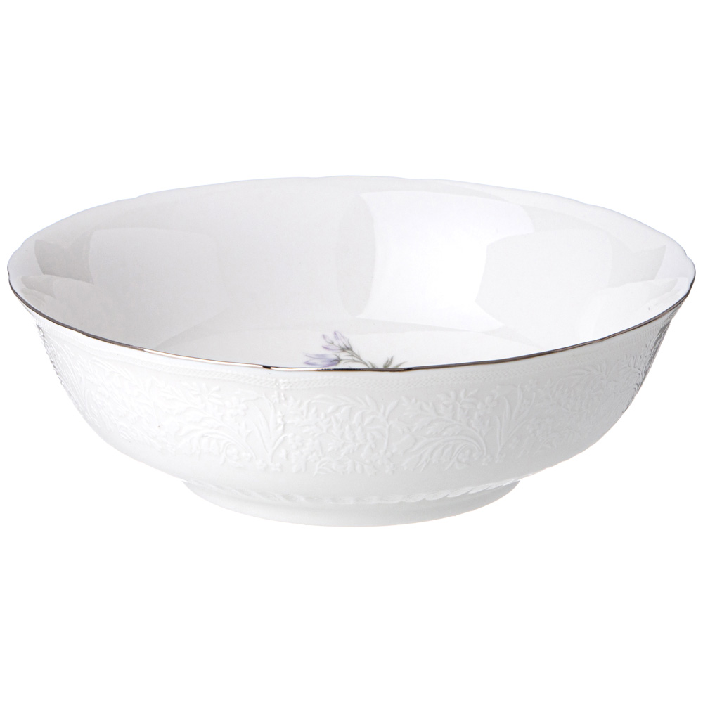 ТМ LEFARD коллекция "BOUQUET" с ботаническим рельефным рисунком, цветочным декором и изящной платиновой полосой. Так и хочется пробежаться по роскошному лугу, упасть в траву и замереть, слиться с этим миром и услышать стрёкот кузнечиков, гул шмелей, шелест лёгких крыльев стрекоз и бабочек. Упрочненный высококачественный тонкий фарфор. Современные эксклюзивные формы, украшенные рельефными линиями и уникальным декором, удобные размеры. Обеденные и закусочные тарелки, суповая тарелка - салатник, овальные блюда и салатники различного назначения - все это делает сервировку ежедневного и праздничного стола изящной и неповторимой. Декорированный рельефный фарфор прекрасно сочетается с белой рельефной частью коллекции. Это прекрасный подарок. Посуда прошла сертификацию. Безопасна для контакта с пищевыми продуктами. Мыть с применением мягких моющих средств. Нельзя использовать в микроволновой печи, не рекомендуется мыть в посудомоечной машине. Комплектность: обеденная тарелка 25,8*2,5 см 6 шт., закусочная тарелка 20,5*1,5 см 6 шт., суповая тарелка - салатник 17,5*5,5 см 750 мл 6 шт., блюдо овальное 32*22,5*2,5 см 2 шт., салатник 22,5*7 см 1650 мл, салатник 15*6 см 630 мл 2 шт.